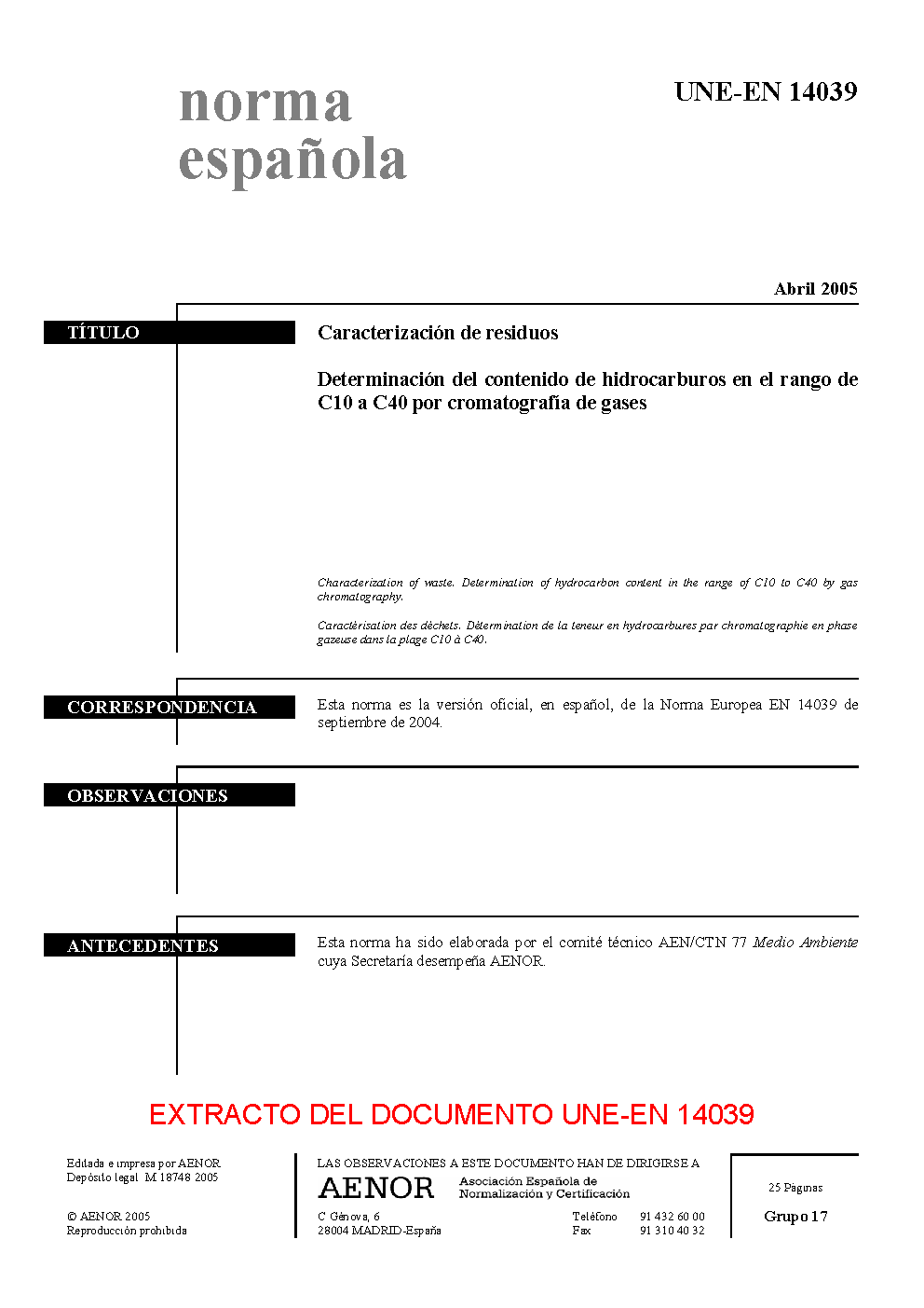 | Publisher | Asociacion Espanola de Normalizacion y Certificacion (AENOR) |