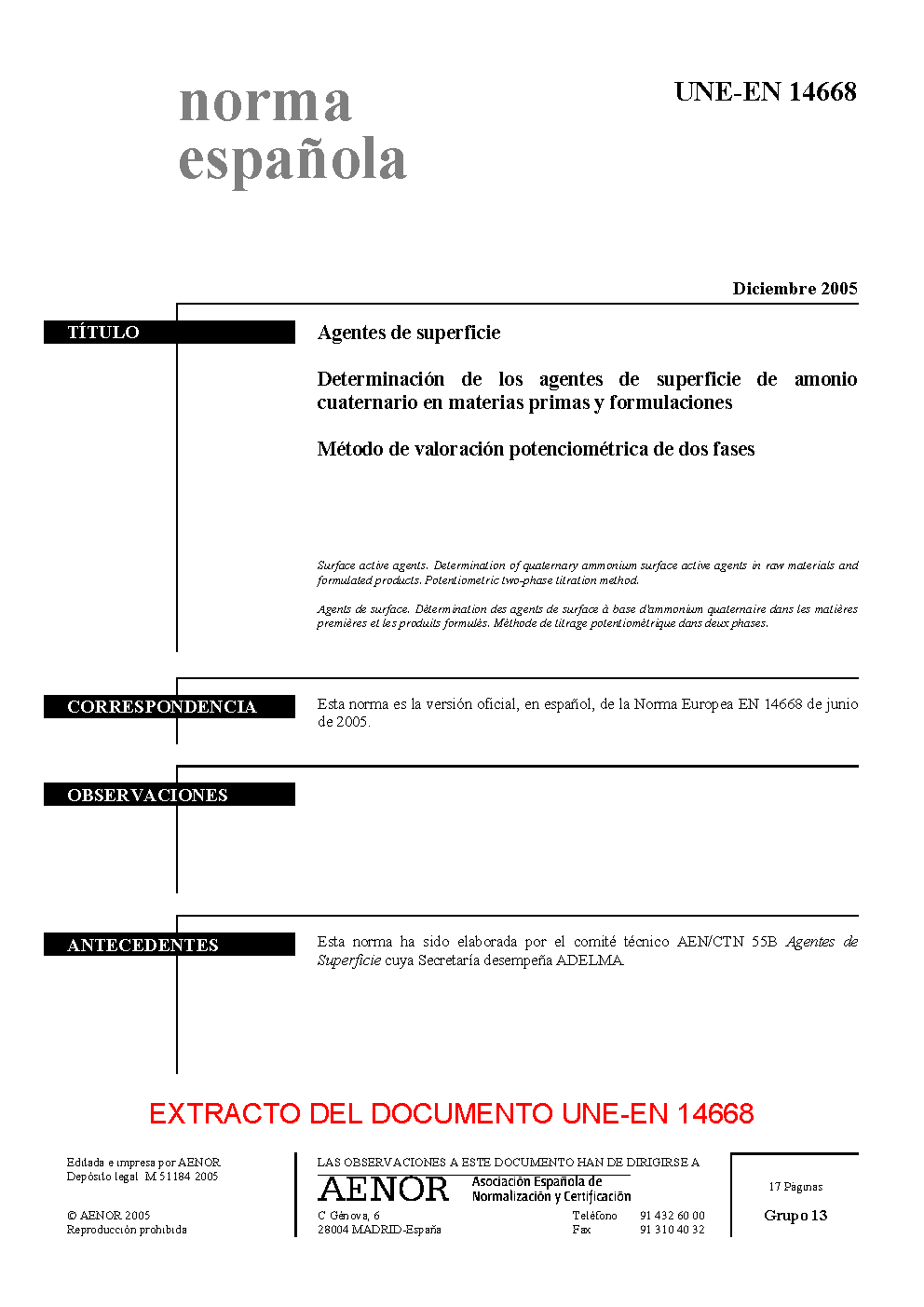 | Publisher | Asociacion Espanola de Normalizacion y Certificacion (AENOR) |