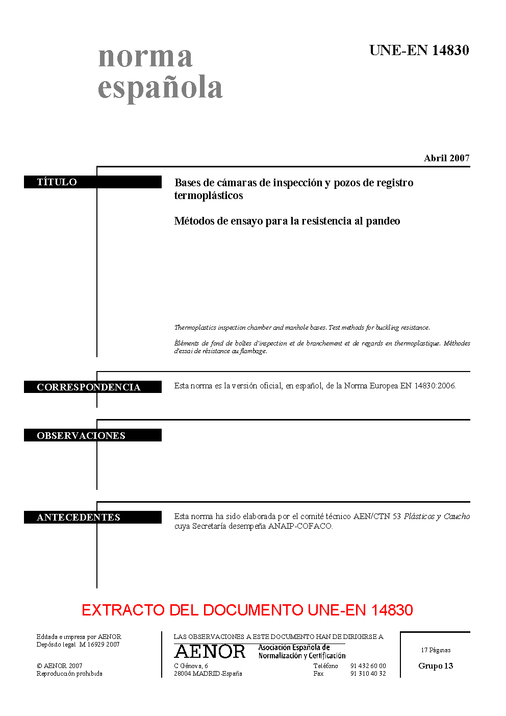 | Publisher | Asociacion Espanola de Normalizacion y Certificacion (AENOR) |