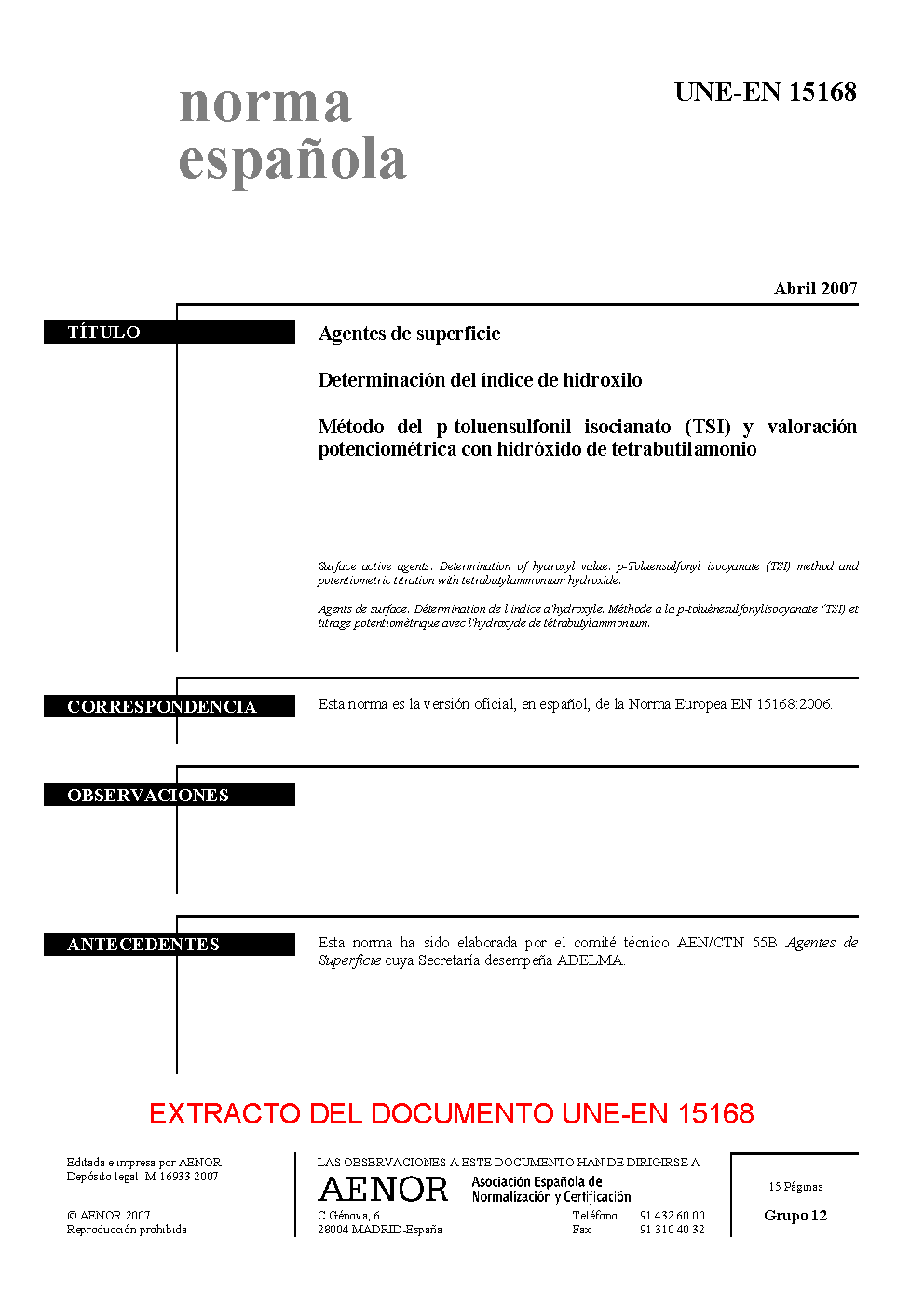 | Publisher | Asociacion Espanola de Normalizacion y Certificacion (AENOR) |