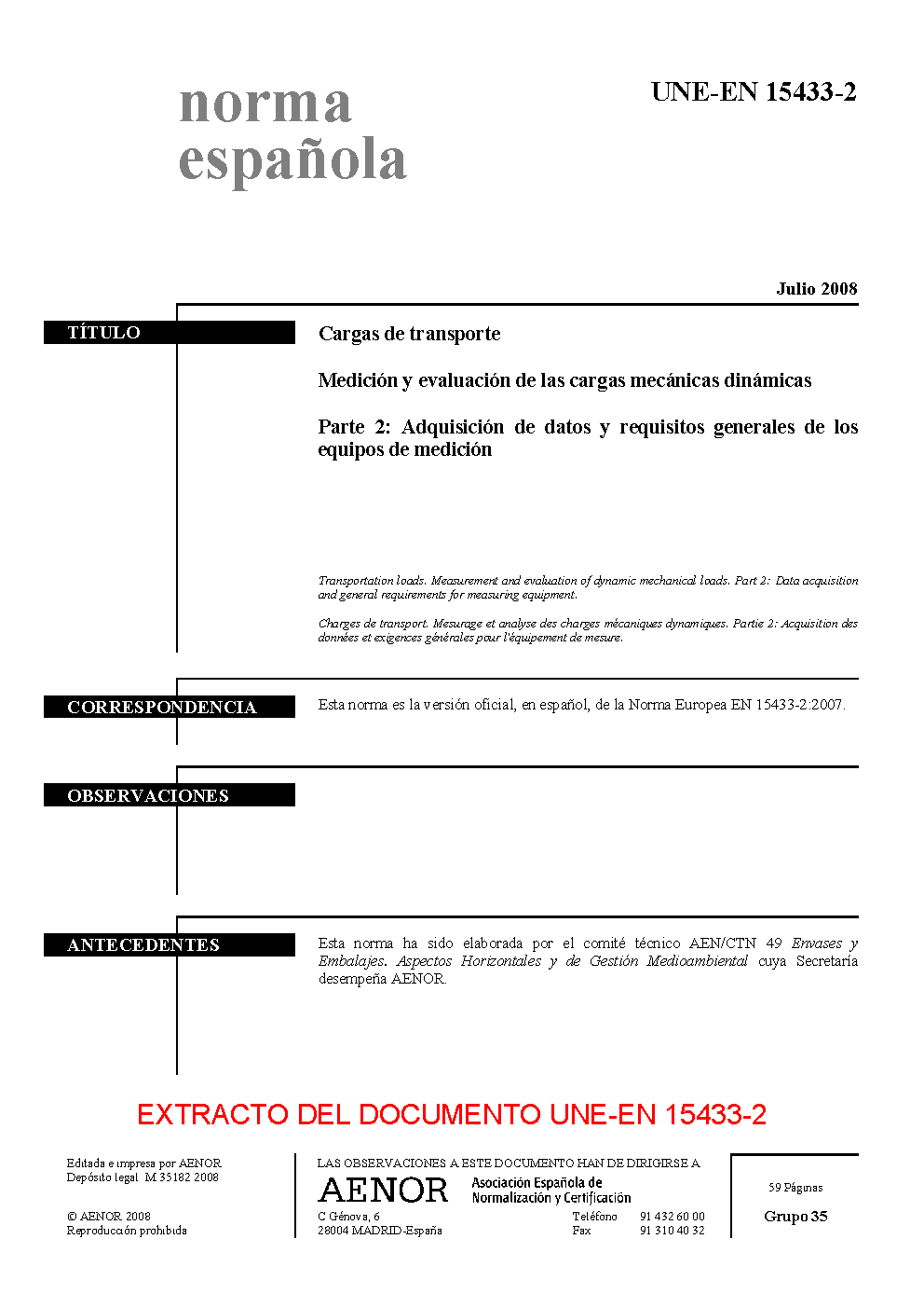 | Publisher | Asociacion Espanola de Normalizacion y Certificacion (AENOR) |