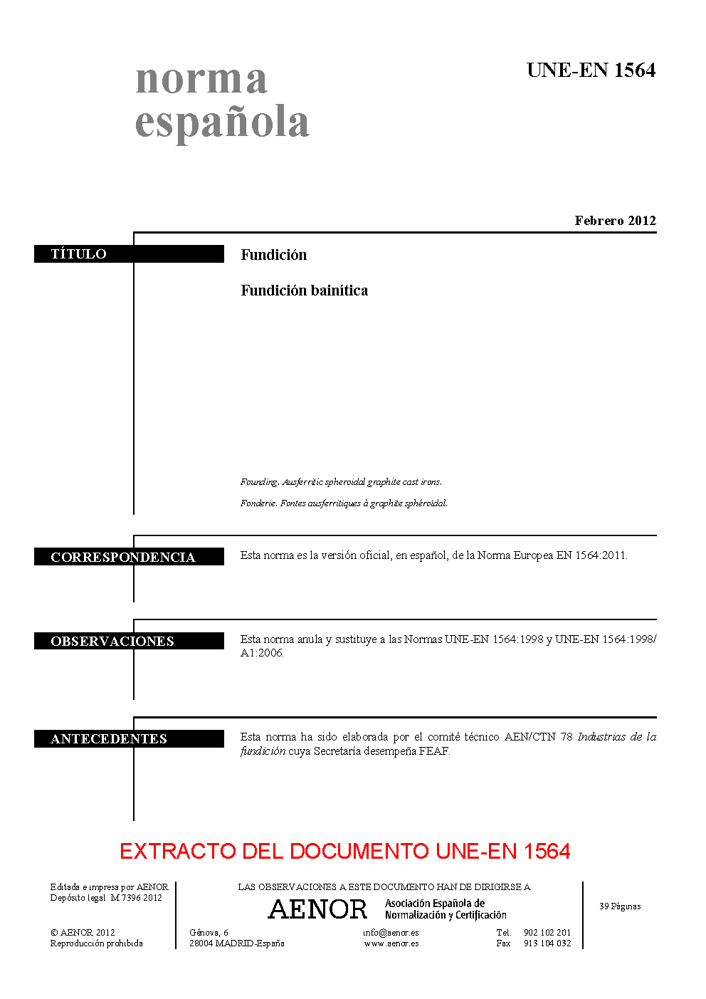 | Publisher | Asociacion Espanola de Normalizacion y Certificacion (AENOR) |