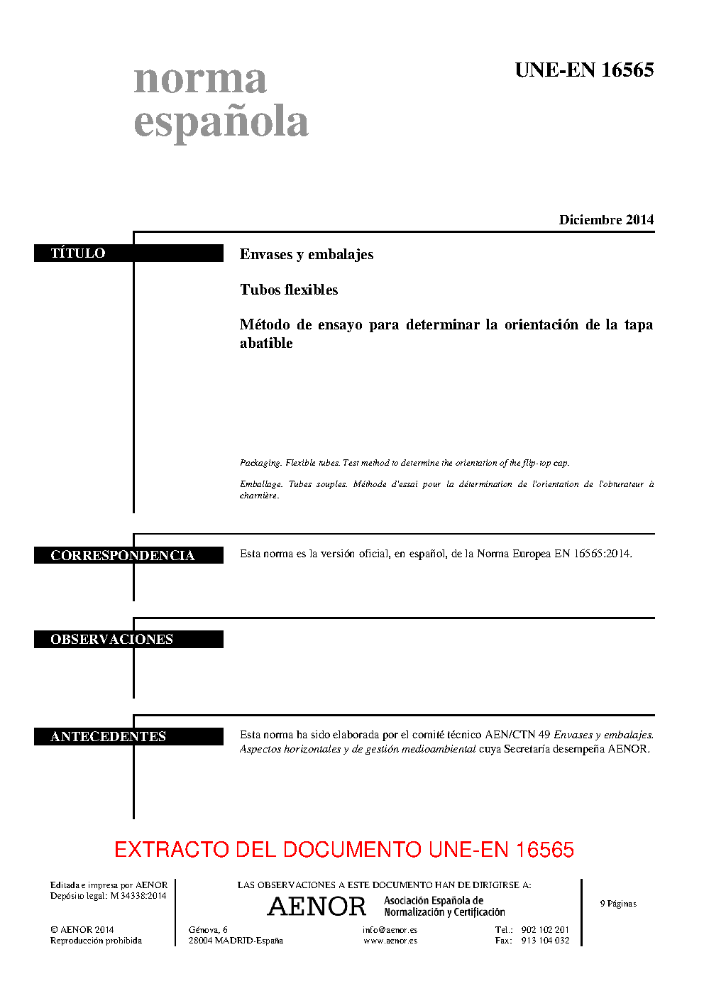 | Publisher | Asociacion Espanola de Normalizacion y Certificacion (AENOR) |