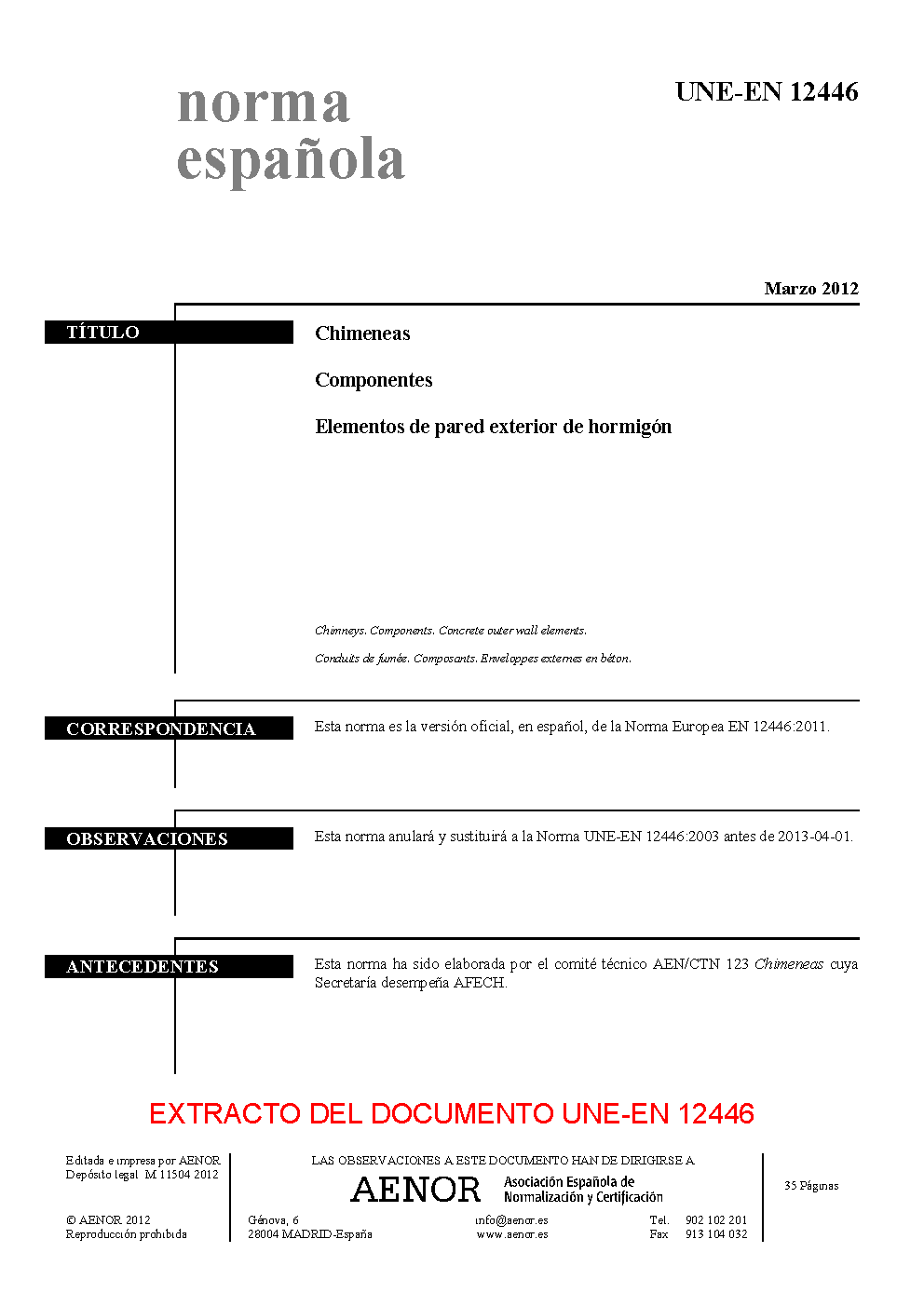 | Publisher | Asociacion Espanola de Normalizacion y Certificacion (AENOR) |
