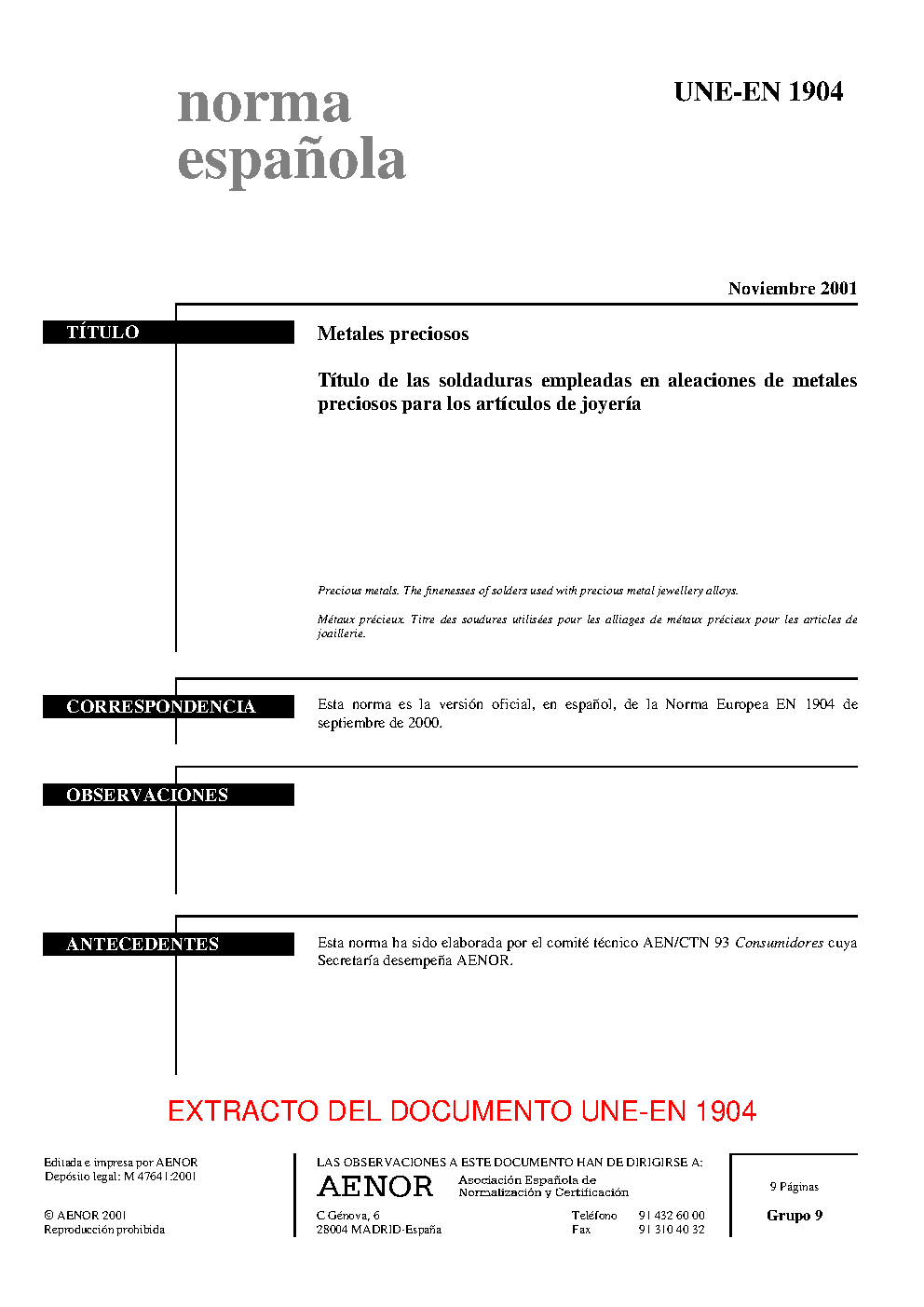 | Publisher | Asociacion Espanola de Normalizacion y Certificacion (AENOR) |