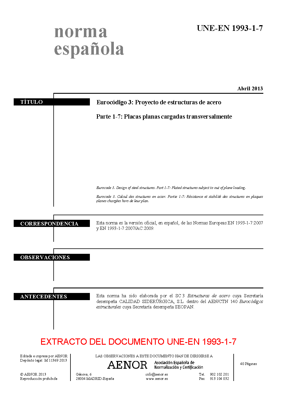 | Publisher | Asociacion Espanola de Normalizacion y Certificacion (AENOR) |