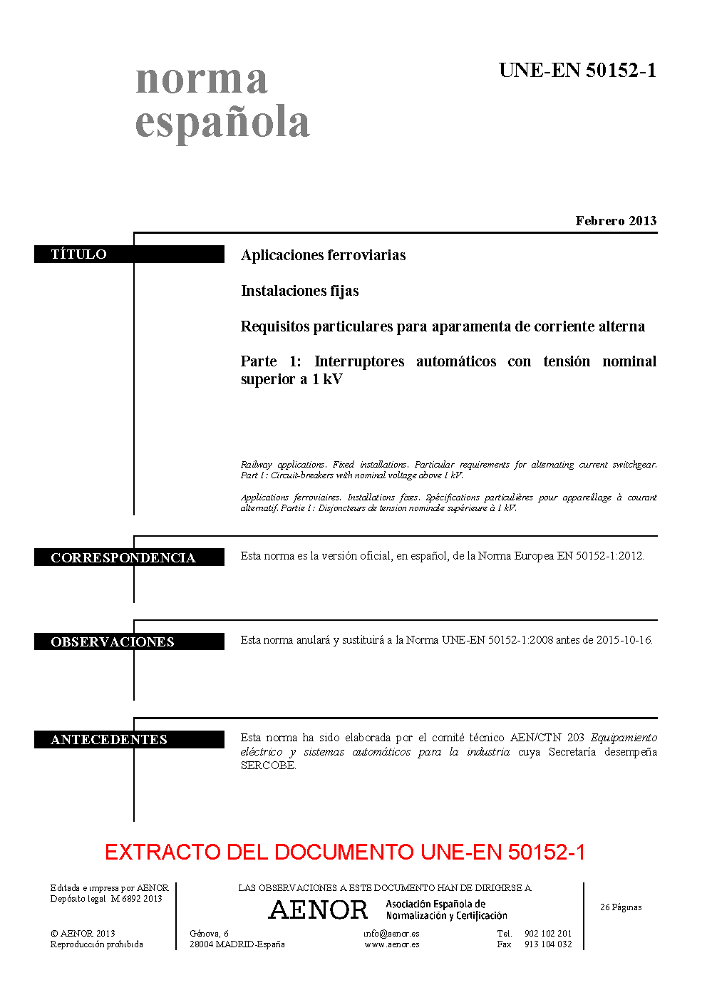 | Publisher | Asociacion Espanola de Normalizacion y Certificacion (AENOR) |