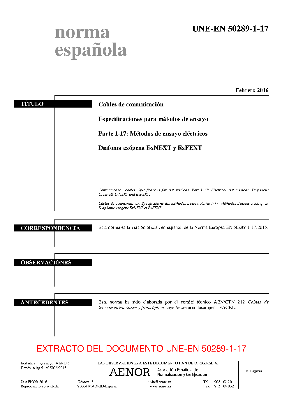 UNE-EN 50289-1-17:2016