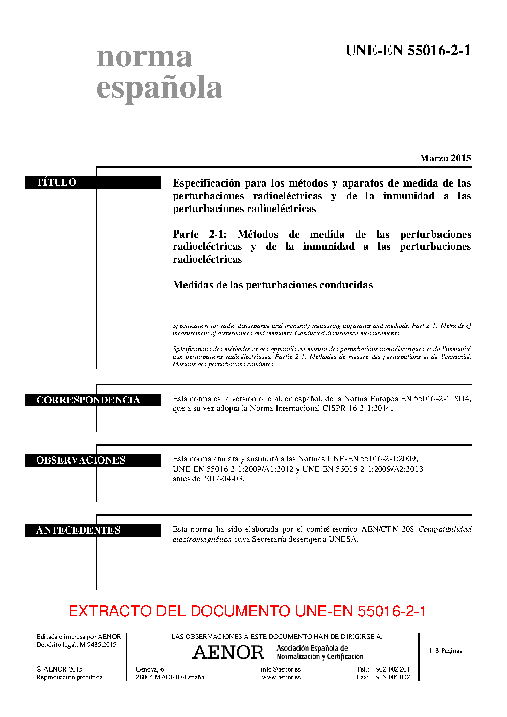 | Publisher | Asociacion Espanola de Normalizacion y Certificacion (AENOR) |
