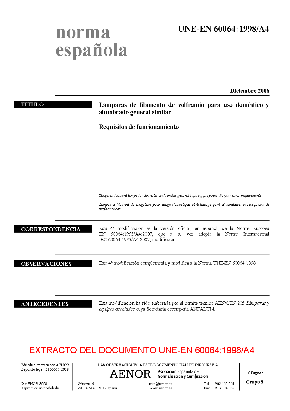 UNE-EN 60064:1998/A4:2008