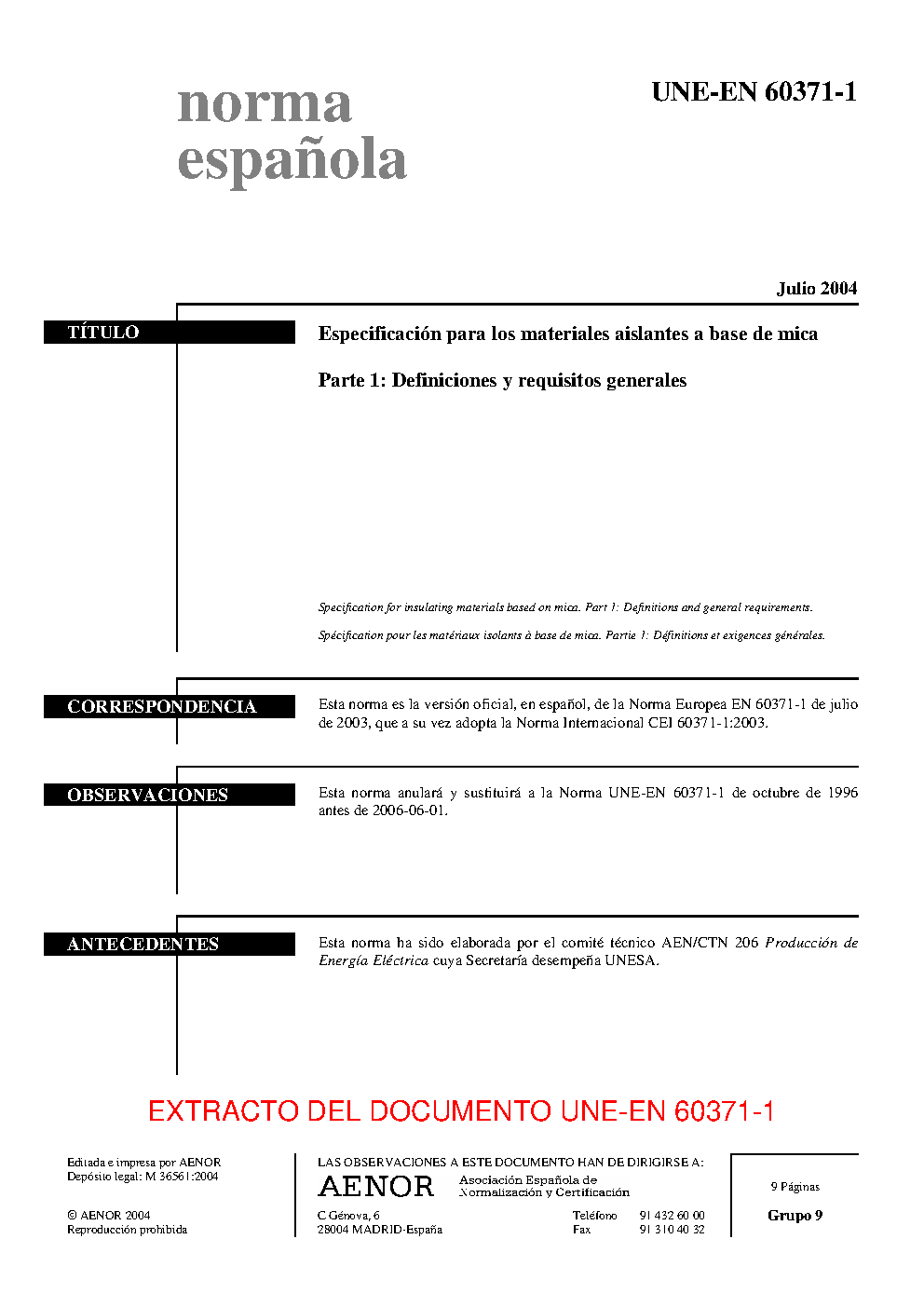 UNE-EN 60371-1:2004