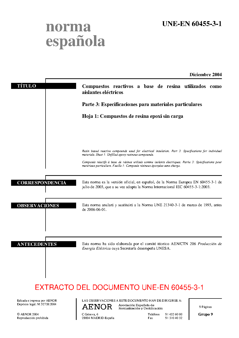 UNE-EN 60455-3-1:2004