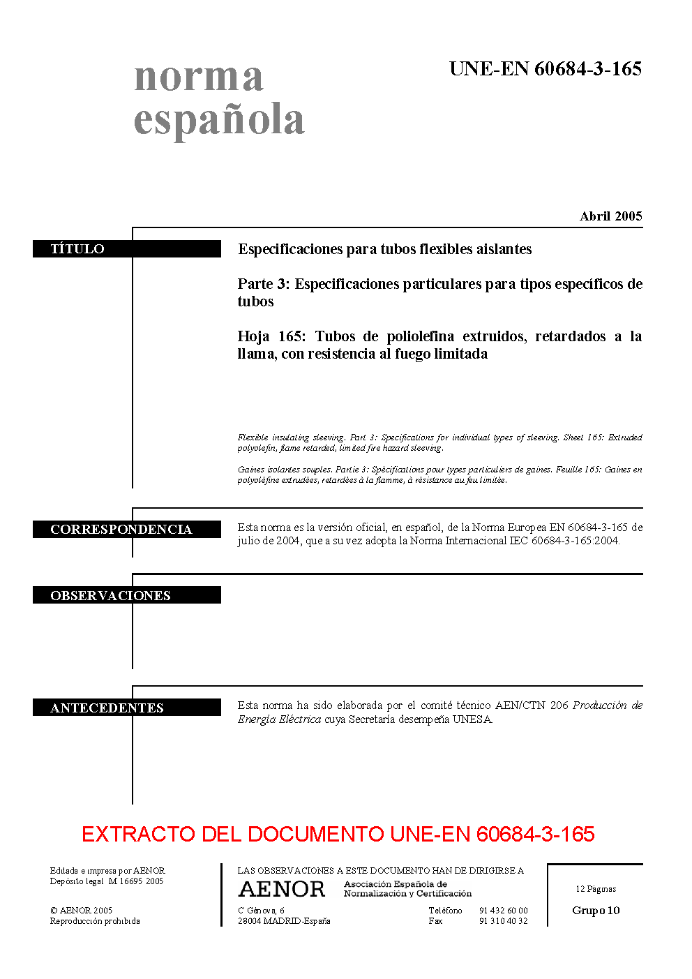| Publisher | Asociacion Espanola de Normalizacion y Certificacion (AENOR) |