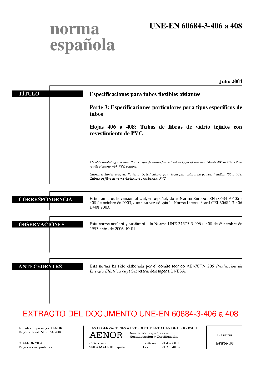 UNE-EN 60684-3-406 A 408:2004 ERRATUM