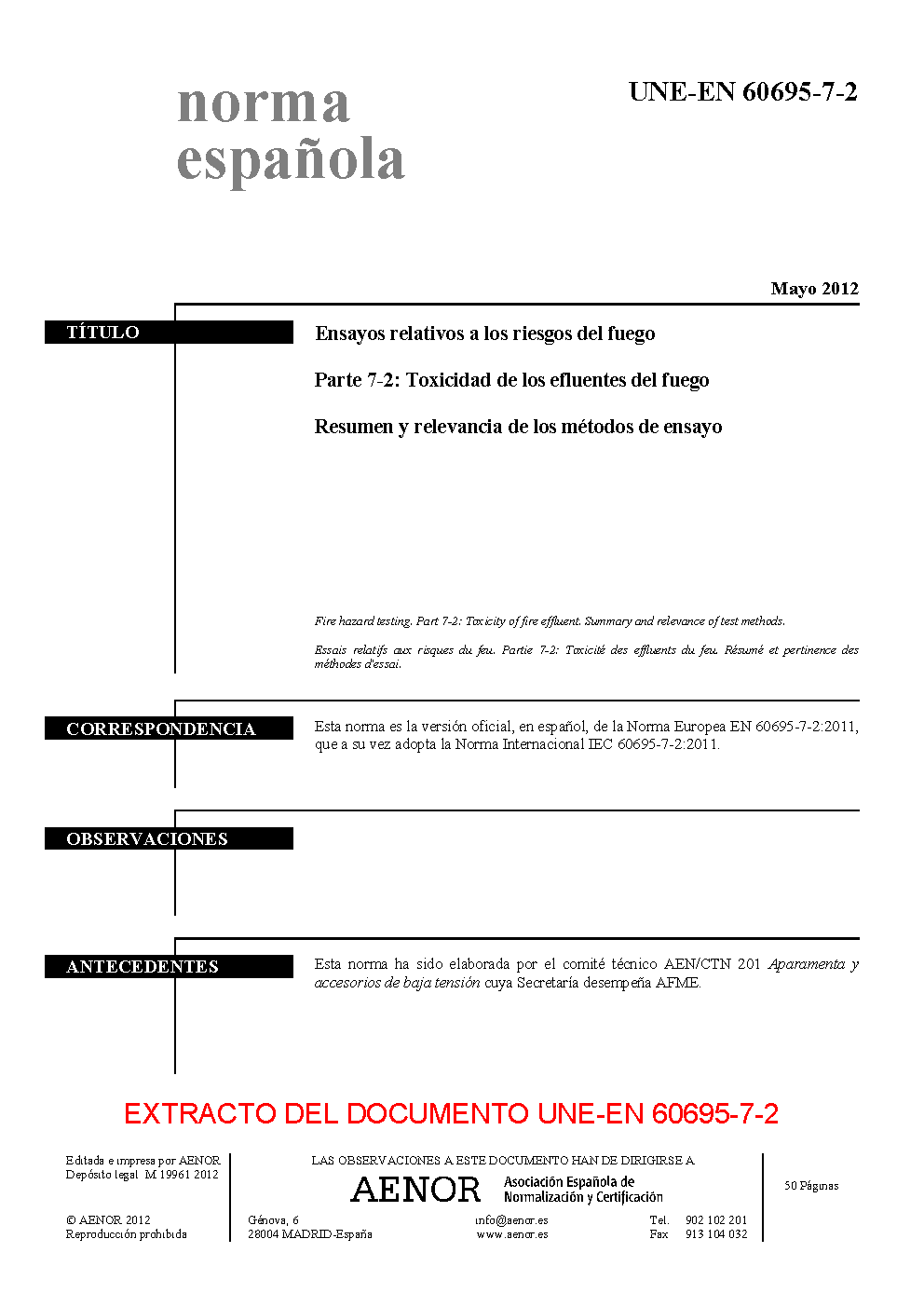 | Publisher | Asociacion Espanola de Normalizacion y Certificacion (AENOR) |