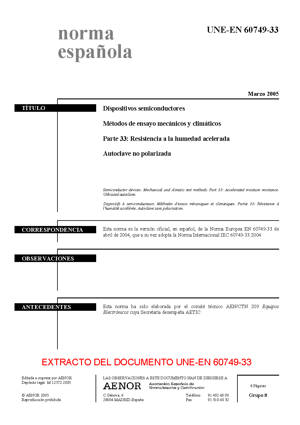 | Publisher | Asociacion Espanola de Normalizacion y Certificacion (AENOR) |