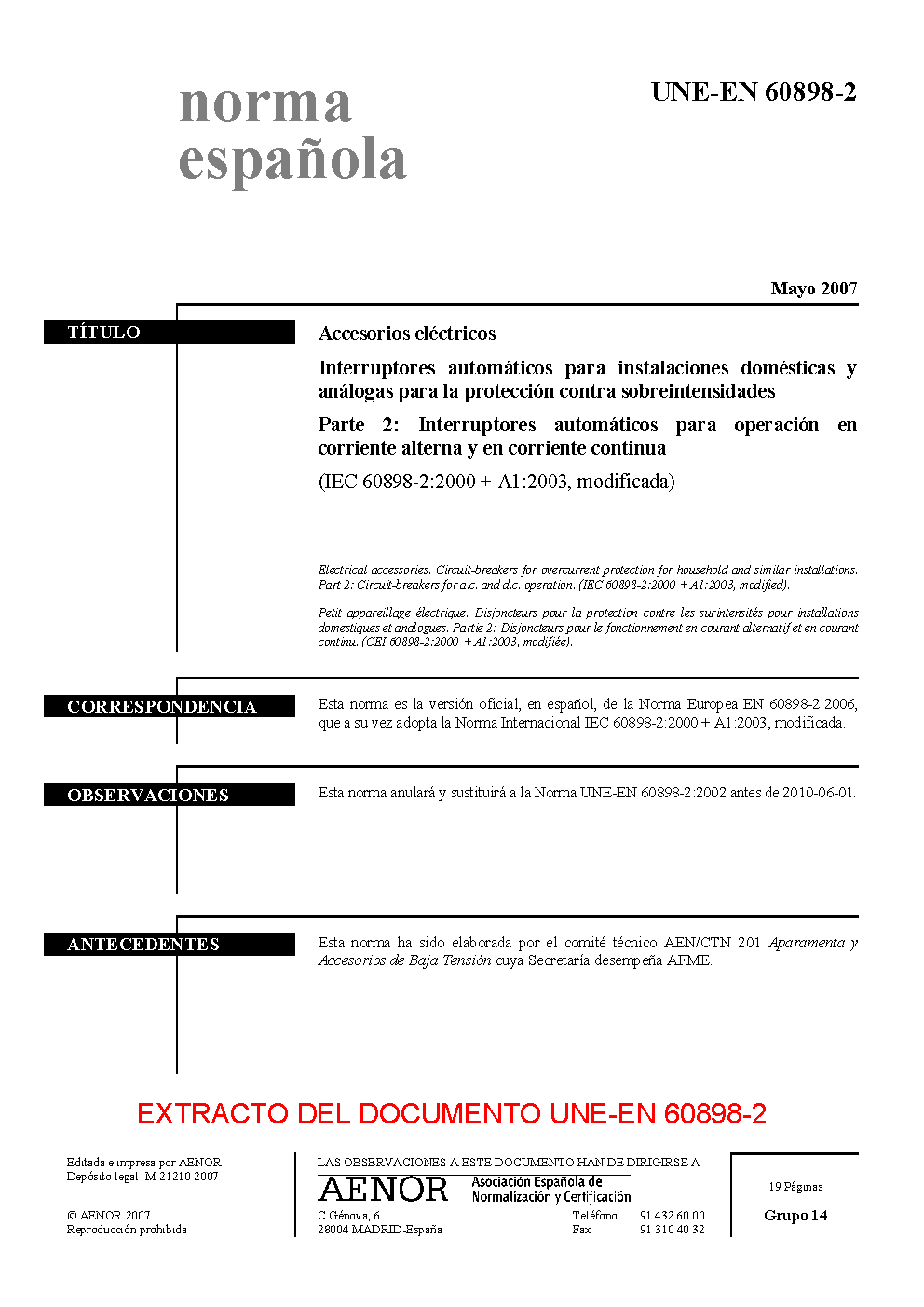 | Publisher | Asociacion Espanola de Normalizacion y Certificacion (AENOR) |