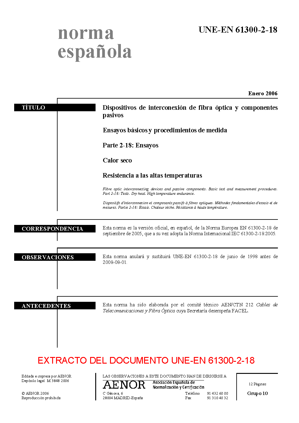 UNE-EN 61300-2-18:2006