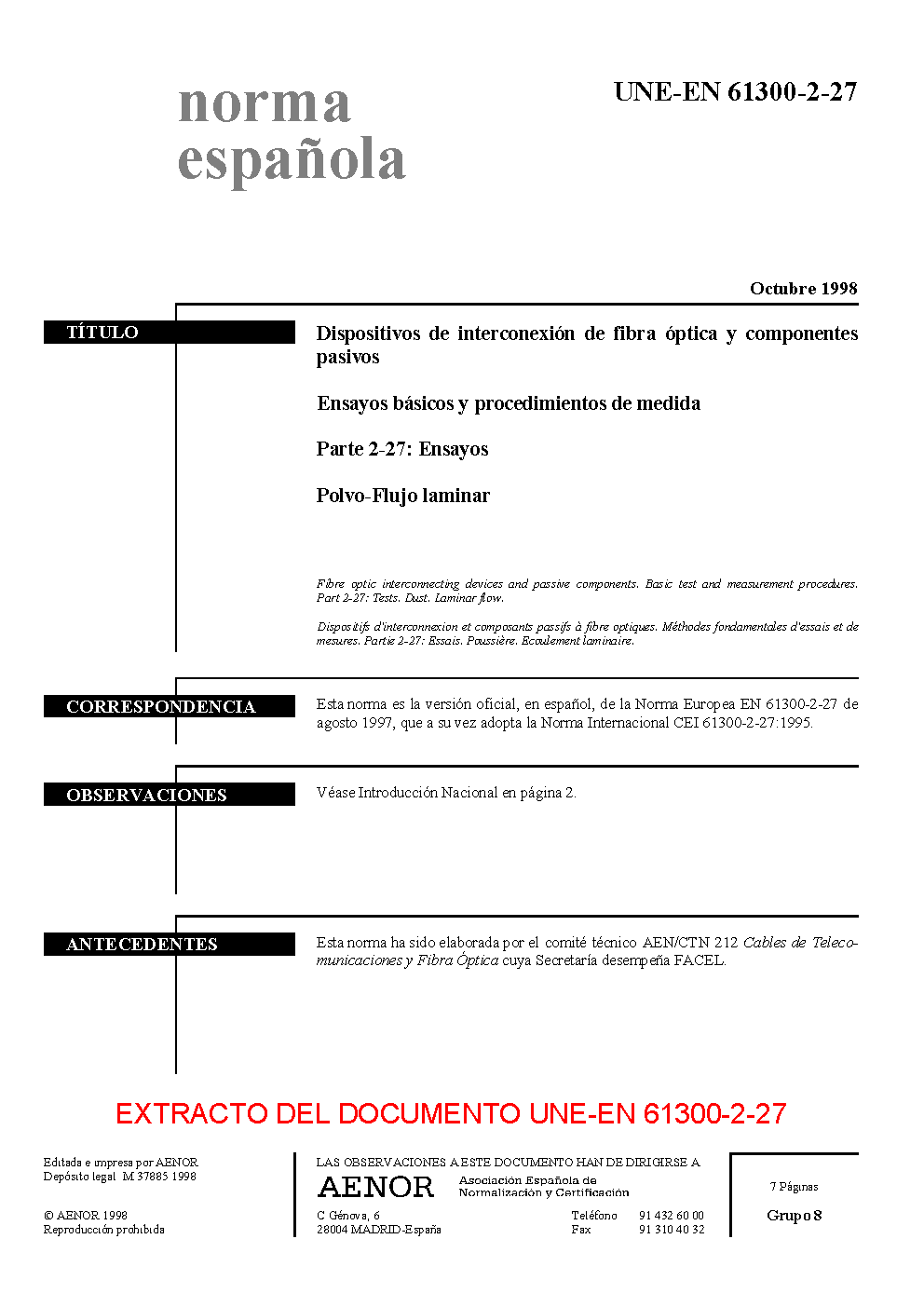 UNE-EN 61300-2-27:1998