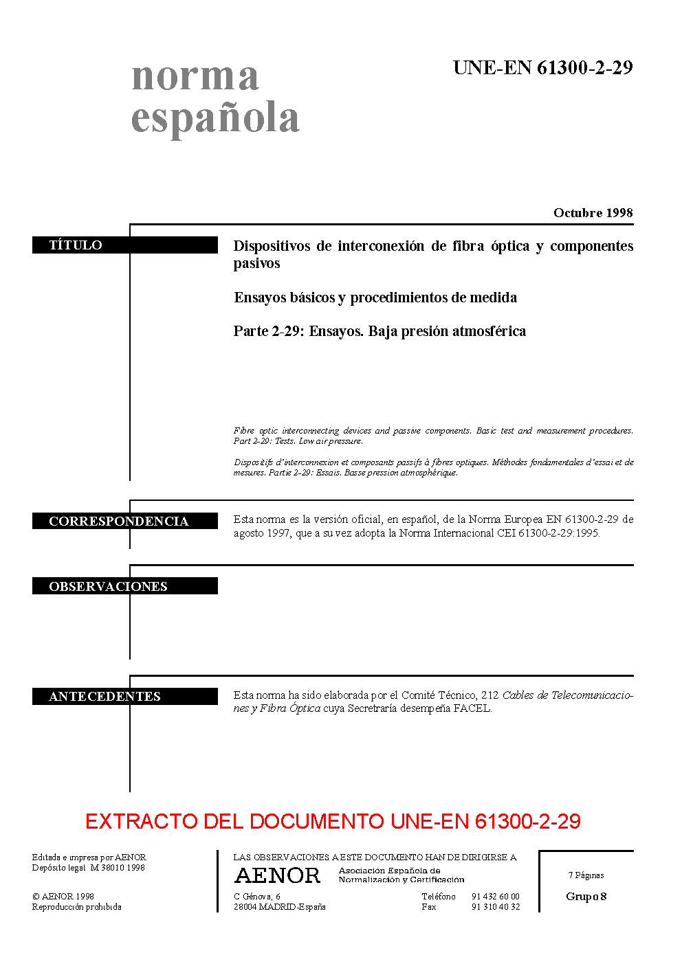 UNE-EN 61300-2-29:1998