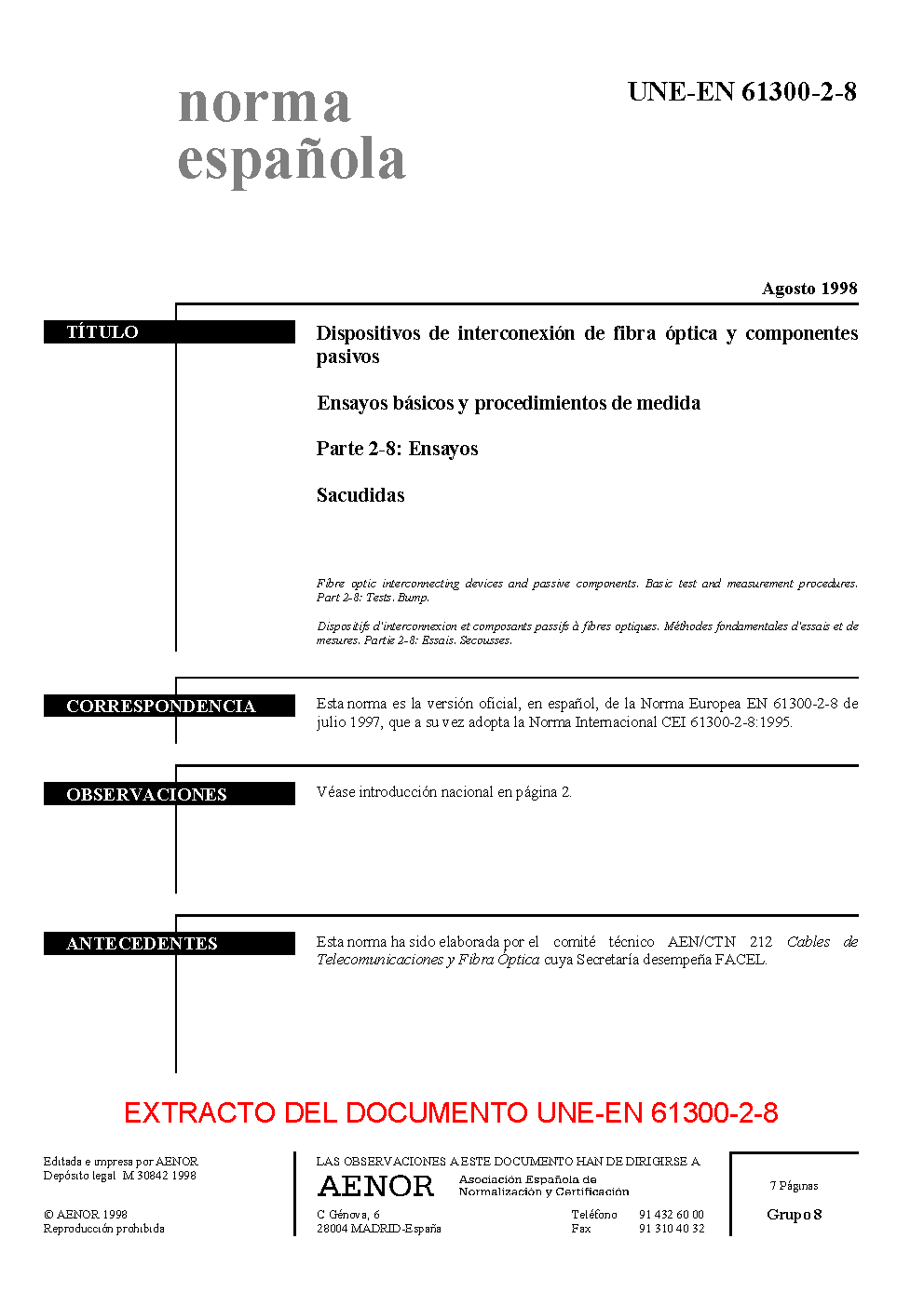 UNE-EN 61300-2-8:1998