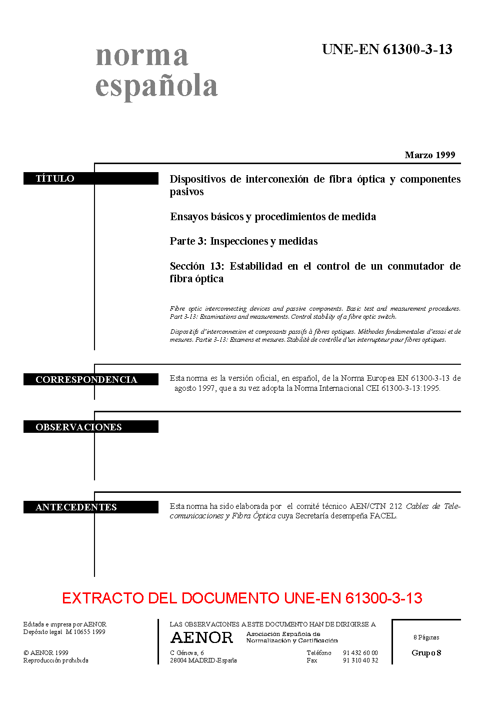 UNE-EN 61300-3-13:1999