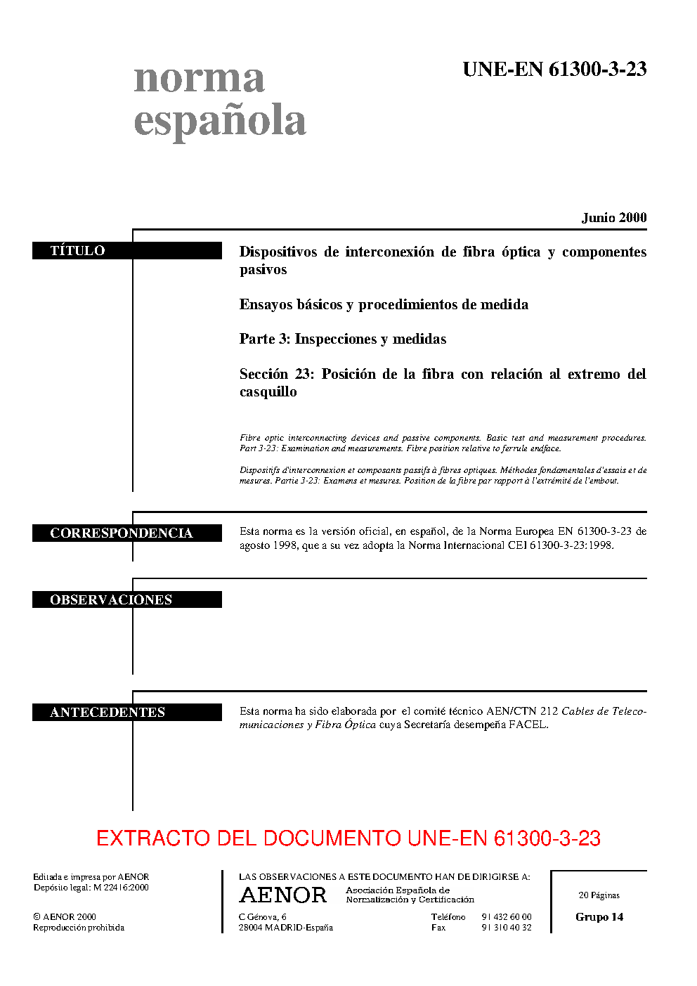 UNE-EN 61300-3-23:2000