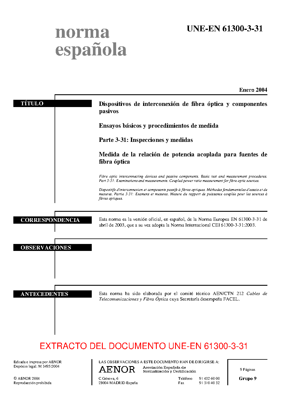 UNE-EN 61300-3-31:2004