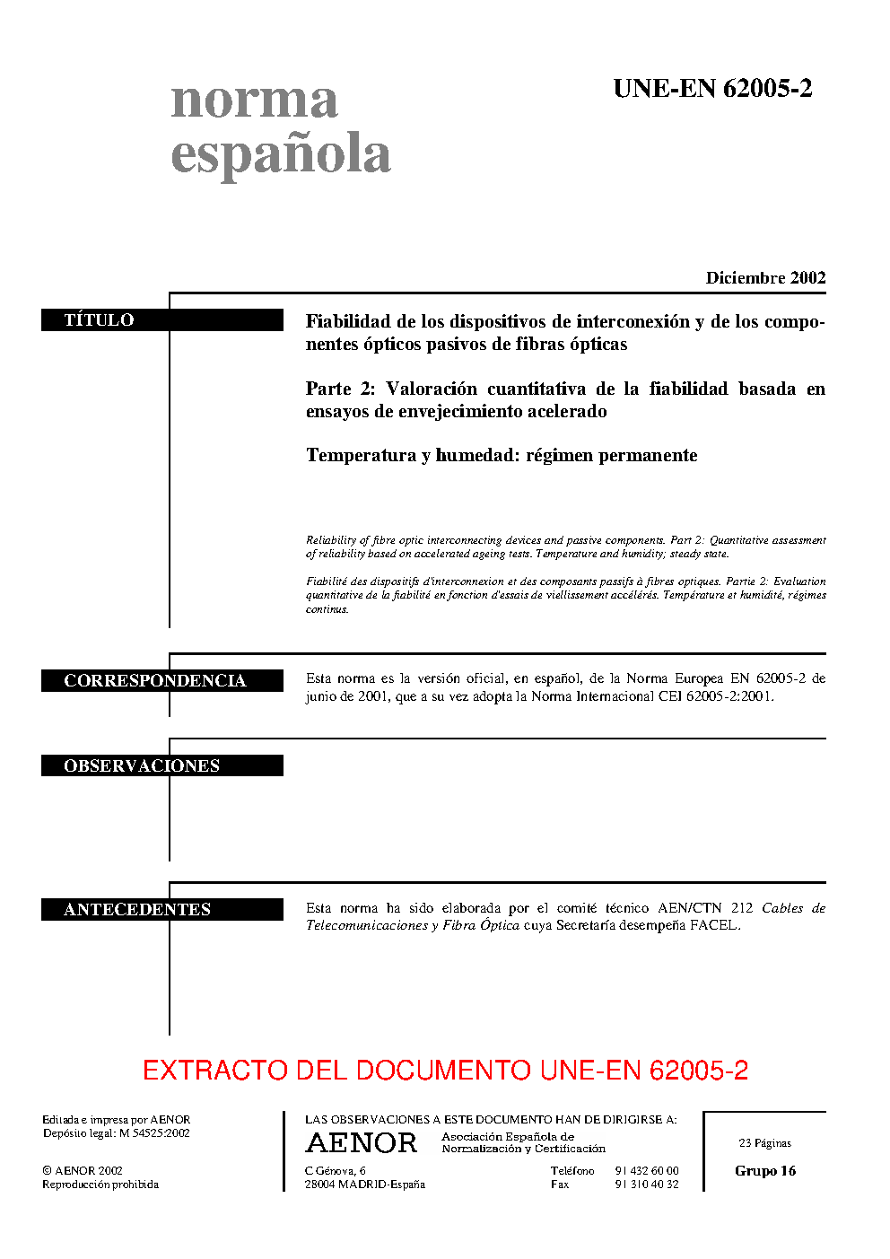 | Publisher | Asociacion Espanola de Normalizacion y Certificacion (AENOR) |