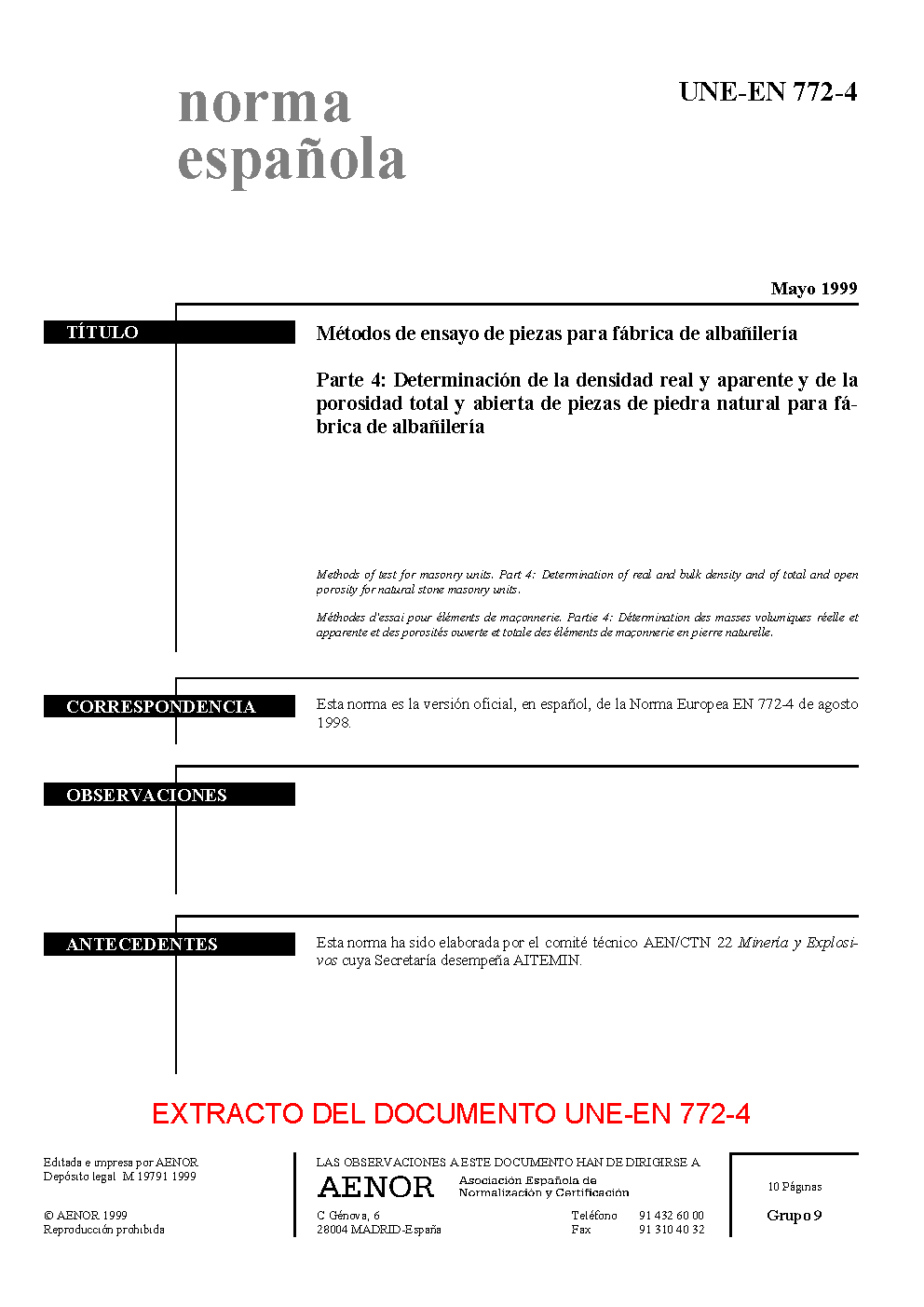 | Publisher | Asociacion Espanola de Normalizacion y Certificacion (AENOR) |
