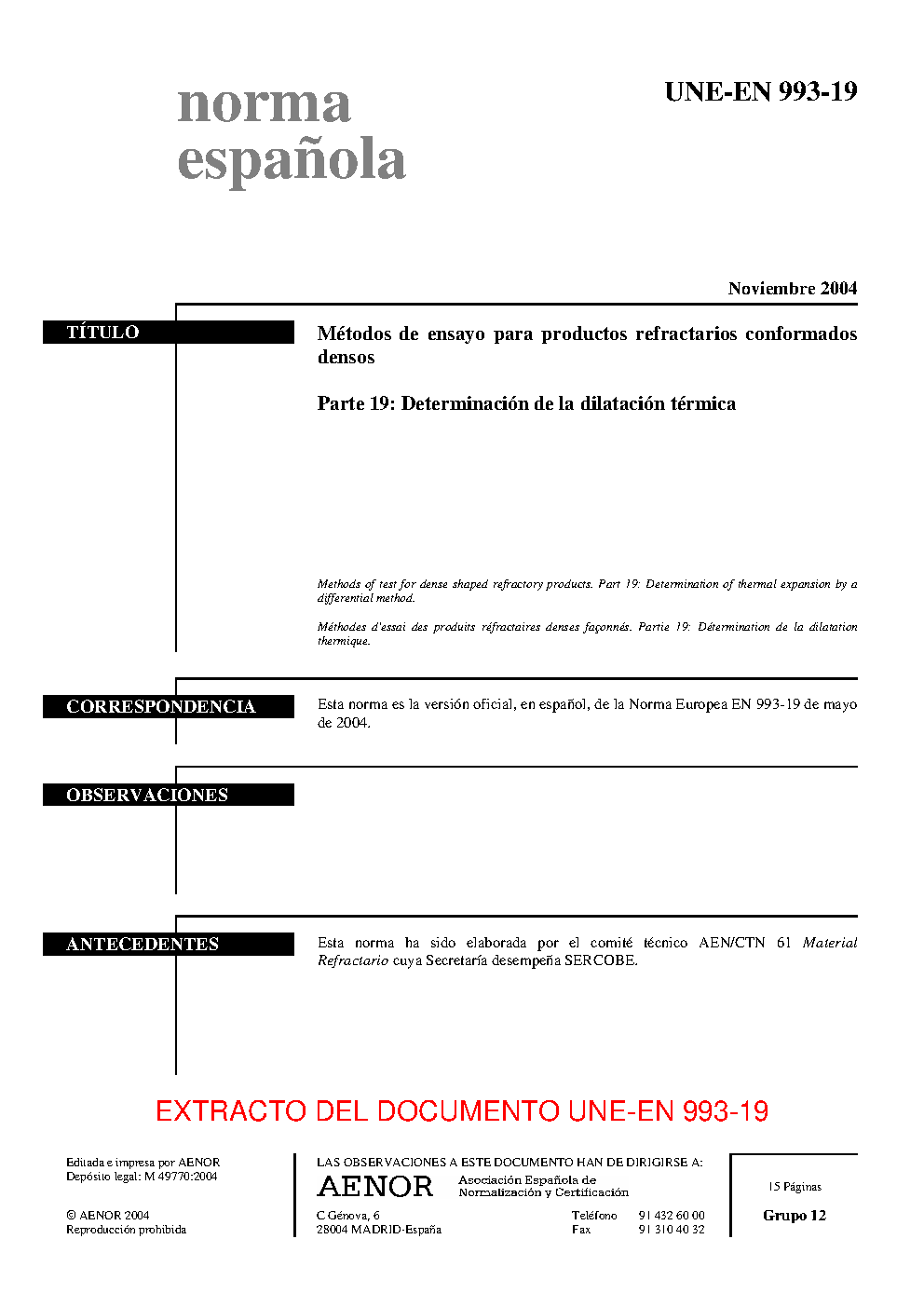 | Publisher | Asociacion Espanola de Normalizacion y Certificacion (AENOR) |