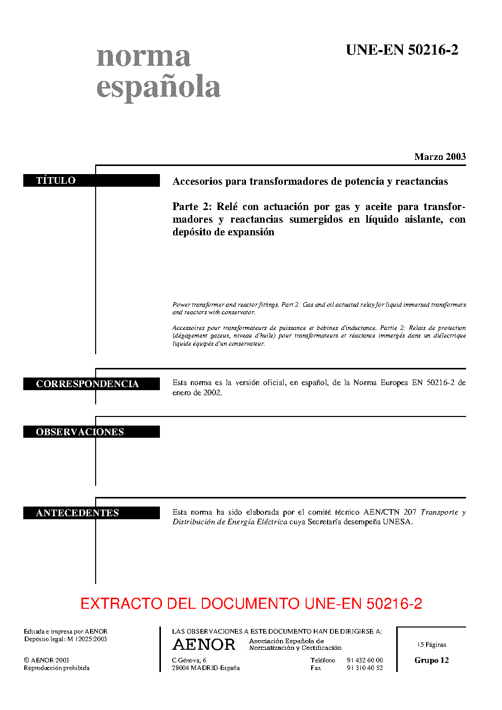 | Publisher | Asociacion Espanola de Normalizacion y Certificacion (AENOR) |