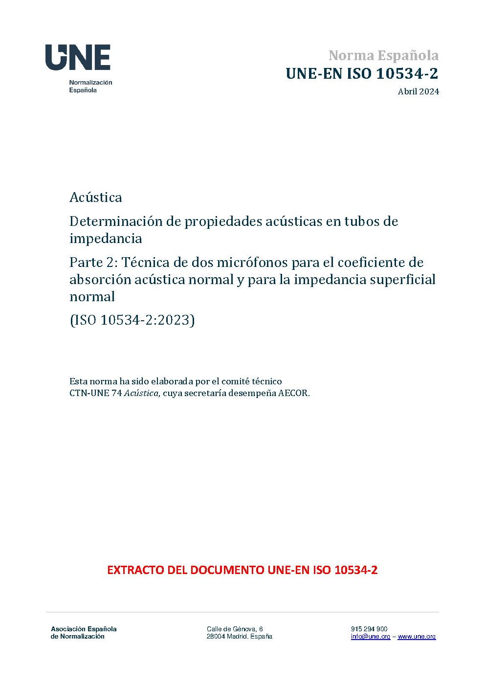 UNE-EN ISO 10534-2:2024
