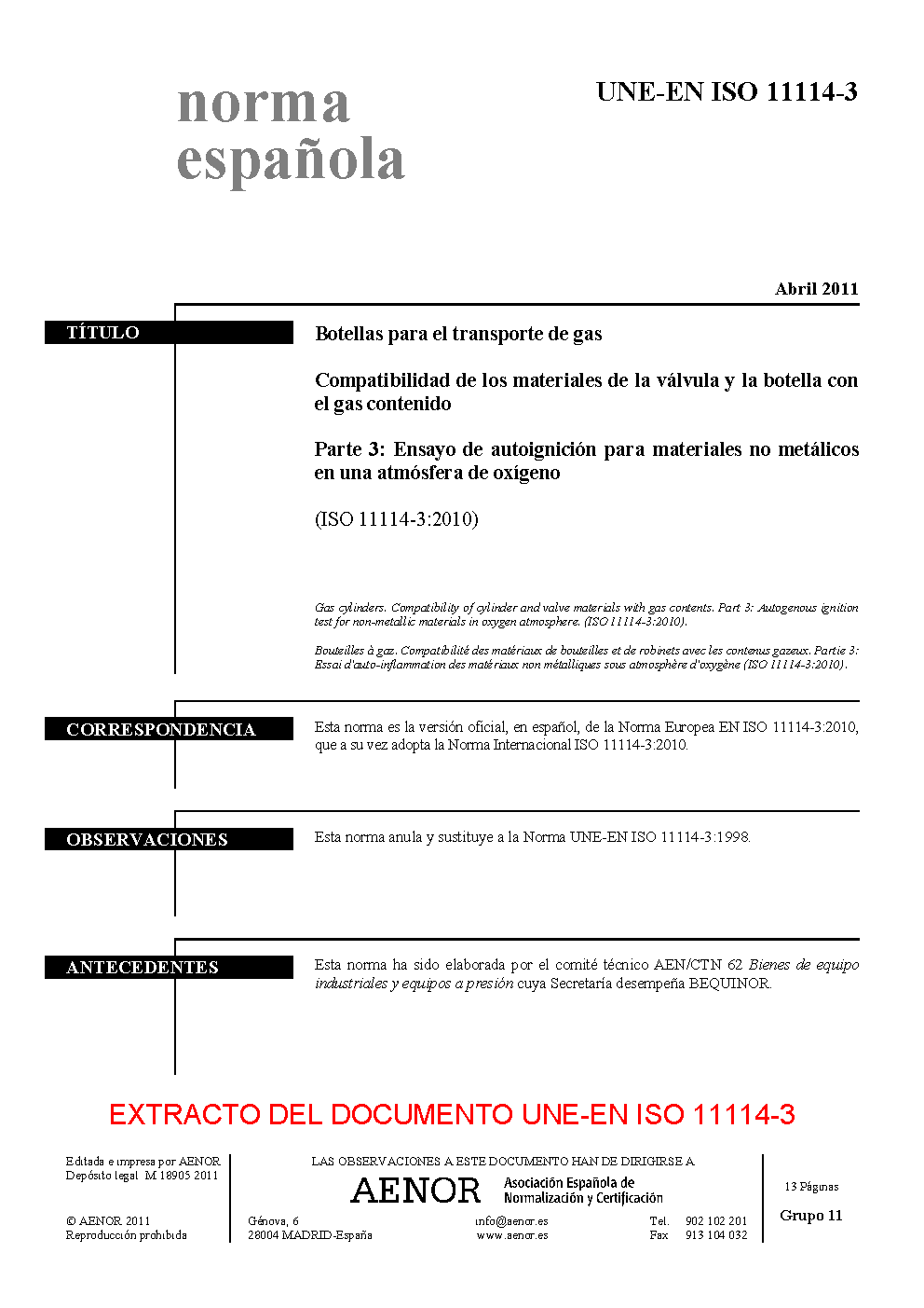 | Publisher | Asociacion Espanola de Normalizacion y Certificacion (AENOR) |