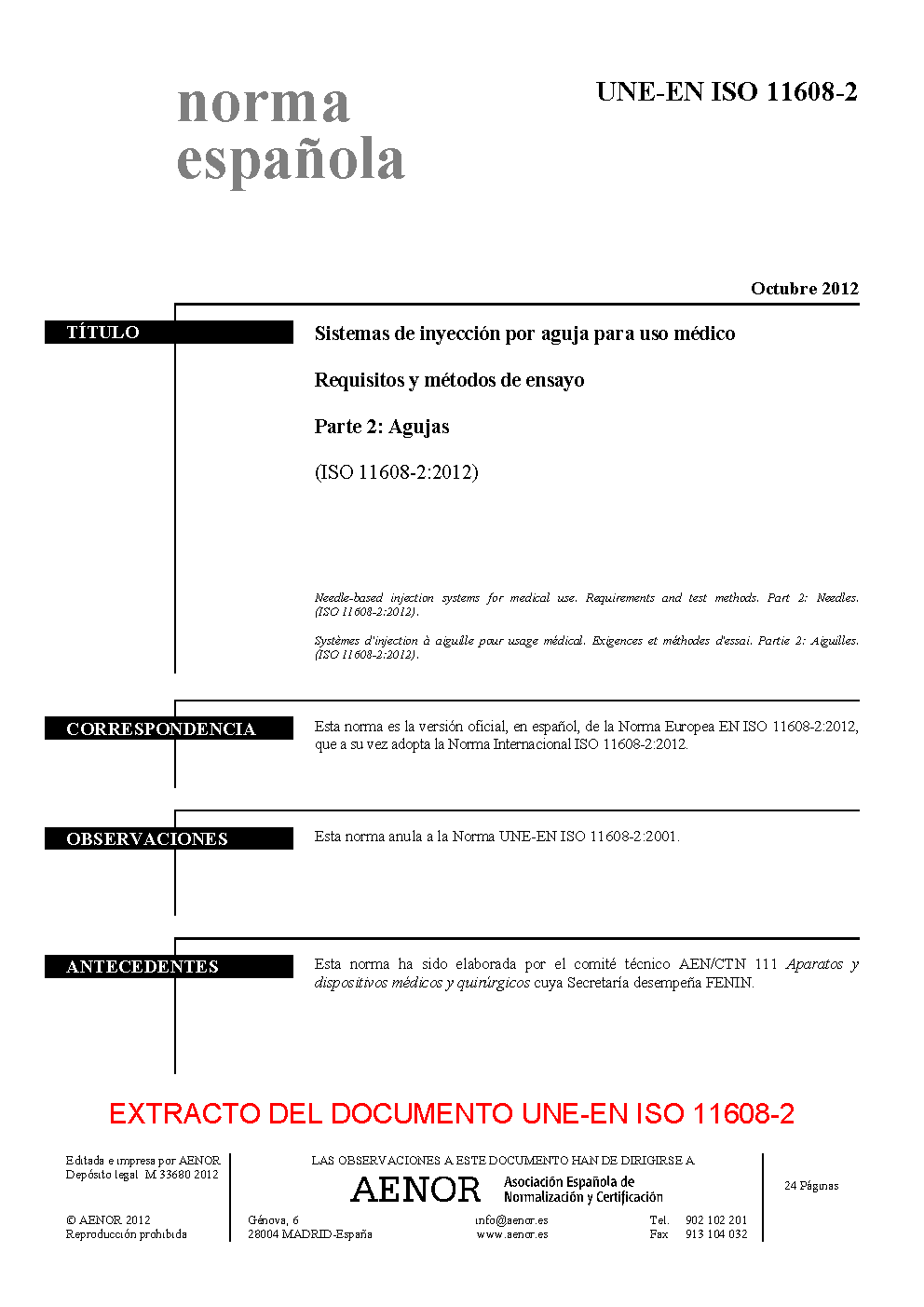 | Publisher | Asociacion Espanola de Normalizacion y Certificacion (AENOR) |