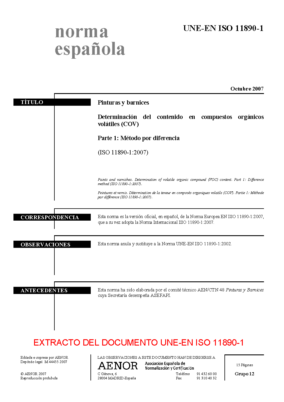| Publisher | Asociacion Espanola de Normalizacion y Certificacion (AENOR) |