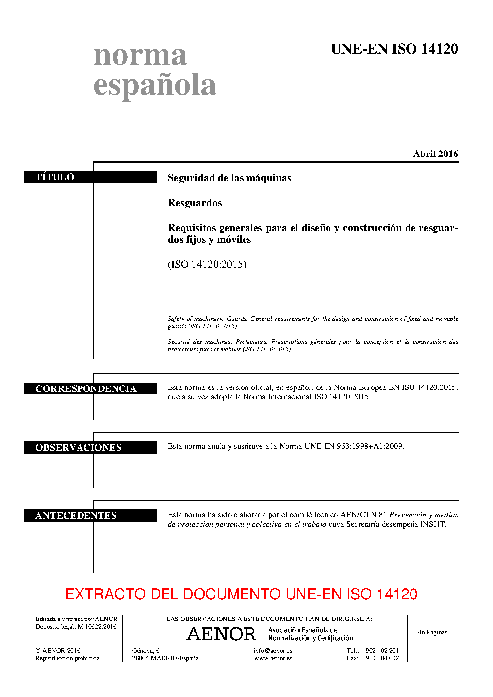 | Publisher | Asociacion Espanola de Normalizacion y Certificacion (AENOR) |