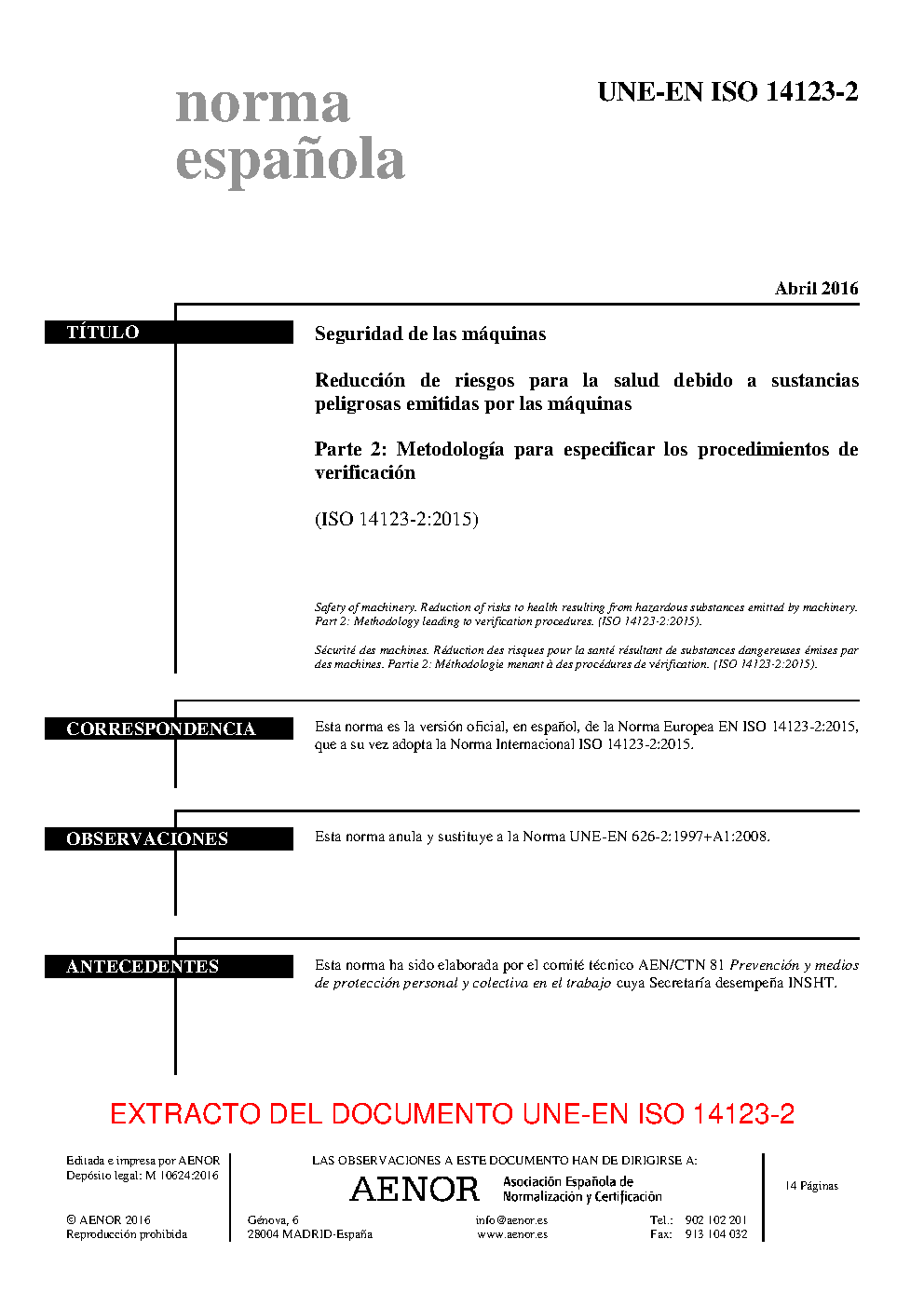 | Publisher | Asociacion Espanola de Normalizacion y Certificacion (AENOR) |