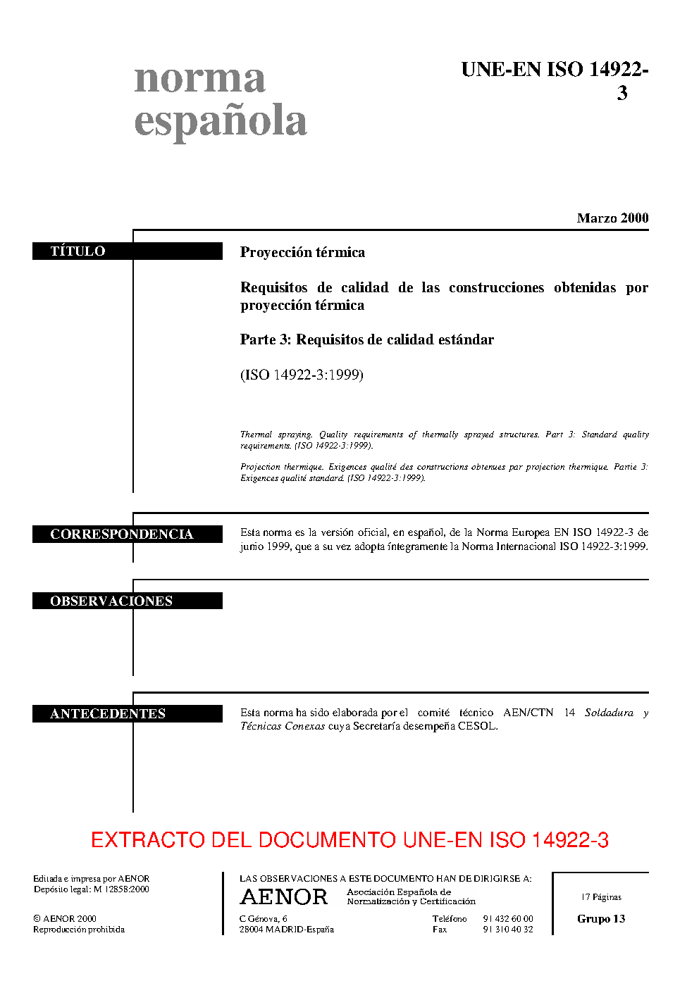 | Publisher | Asociacion Espanola de Normalizacion y Certificacion (AENOR) |