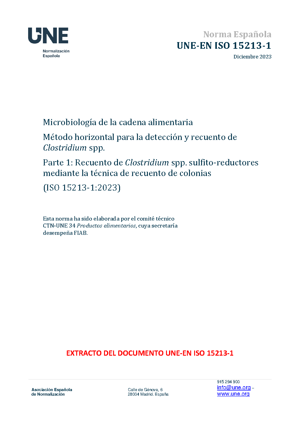 Microbiology of the food chain - Horizontal method for the detection and enumeration of Clostridium spp. - Part 1: Enumeration of sulfite-reducing Clostridium spp. by colony-count technique (ISO 15213-1:2023)