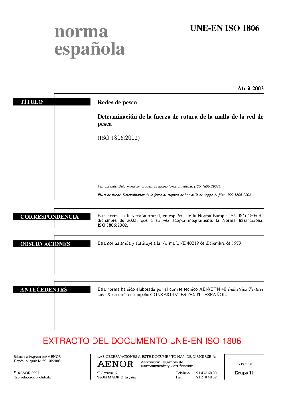 | Publisher | Asociacion Espanola de Normalizacion y Certificacion (AENOR) |