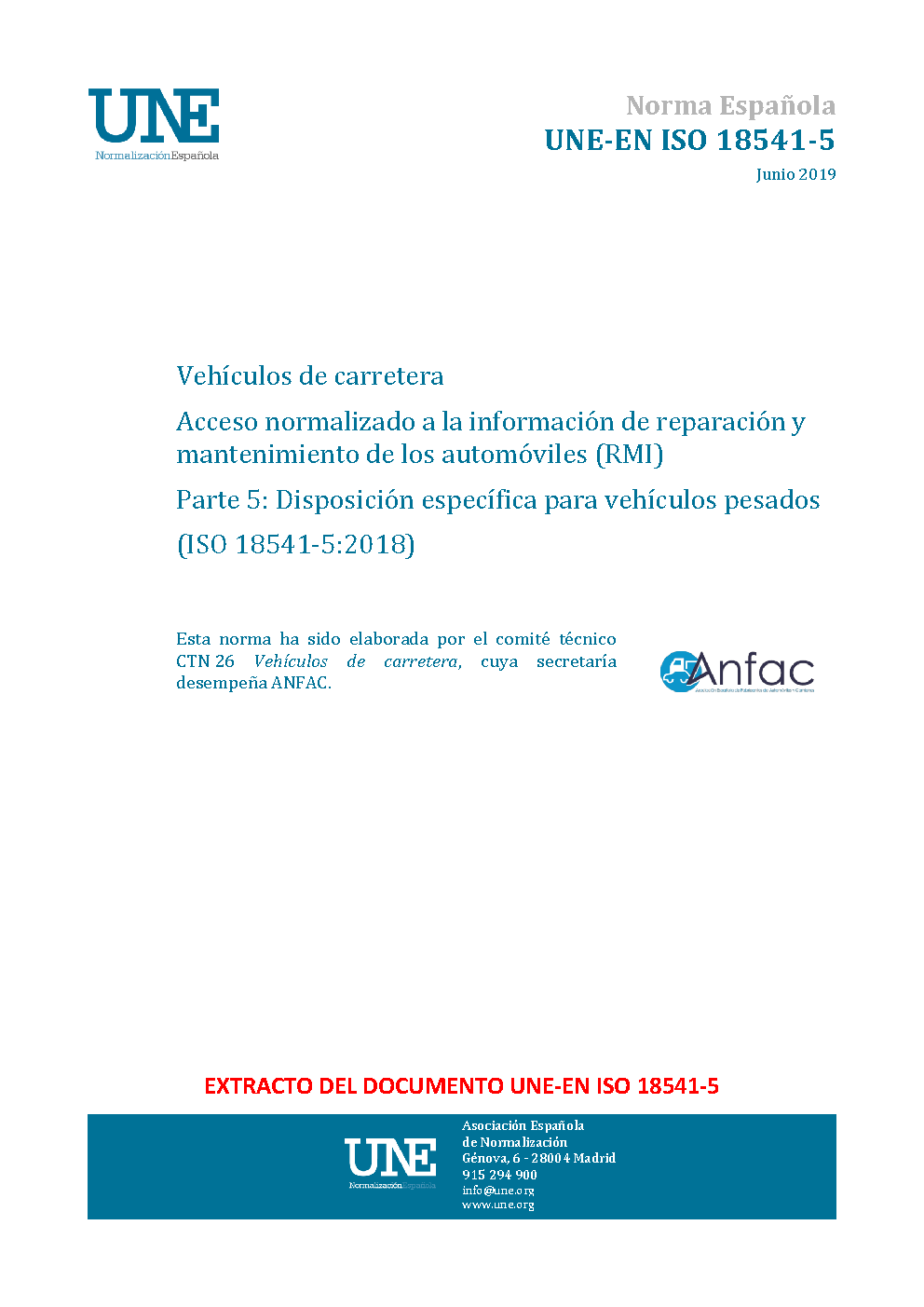 Road vehicles - Standardized access to automotive repair and maintenance information (RMI) - Part 5: Heavy duty specific provision (ISO 18541-5:2018)