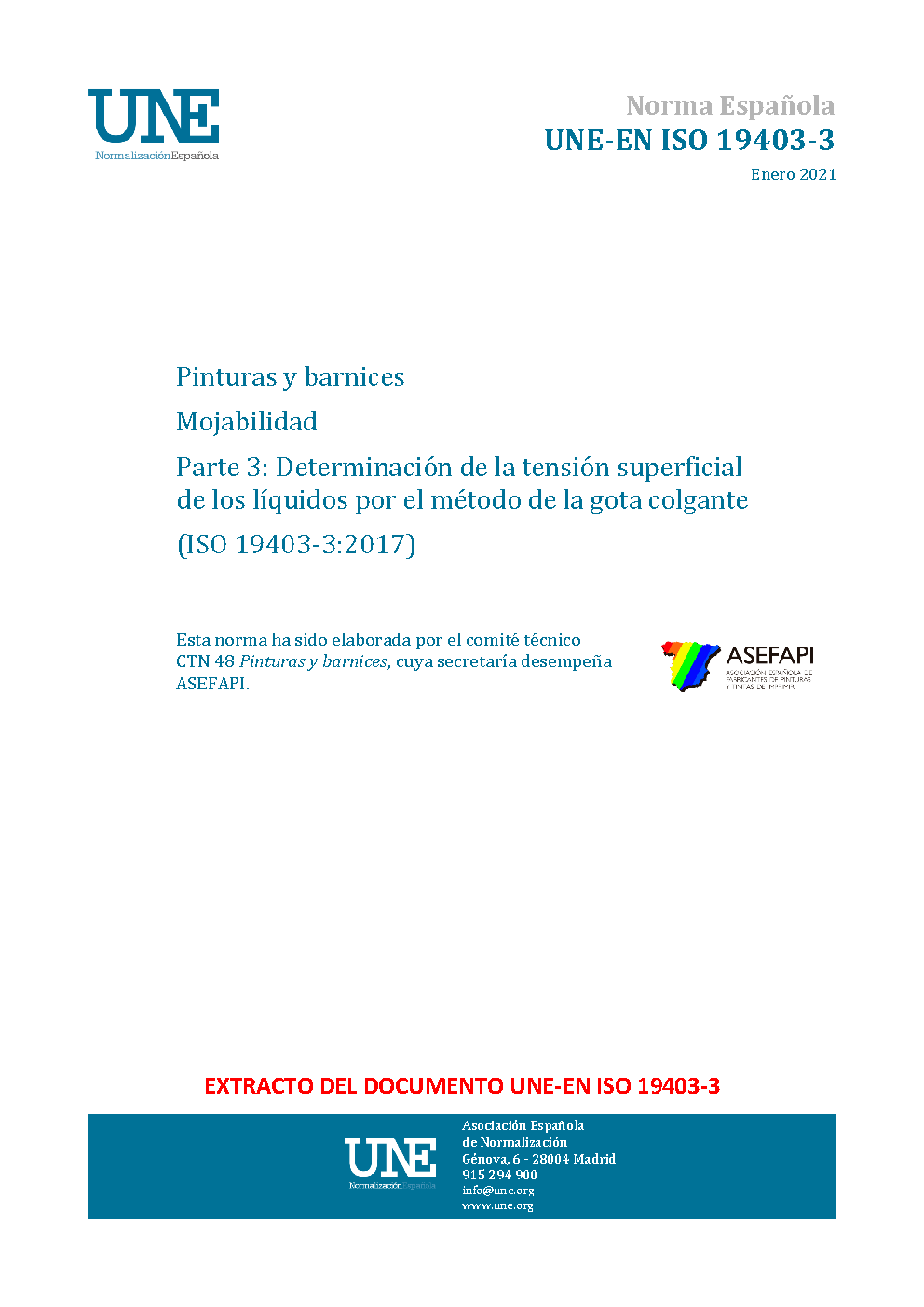 Paints and varnishes - Wettability - Part 3: Determination of the surface tension of liquids using the pendant drop method (ISO 19403-3:2017)