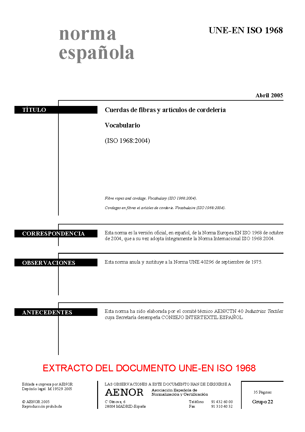 | Publisher | Asociacion Espanola de Normalizacion y Certificacion (AENOR) |