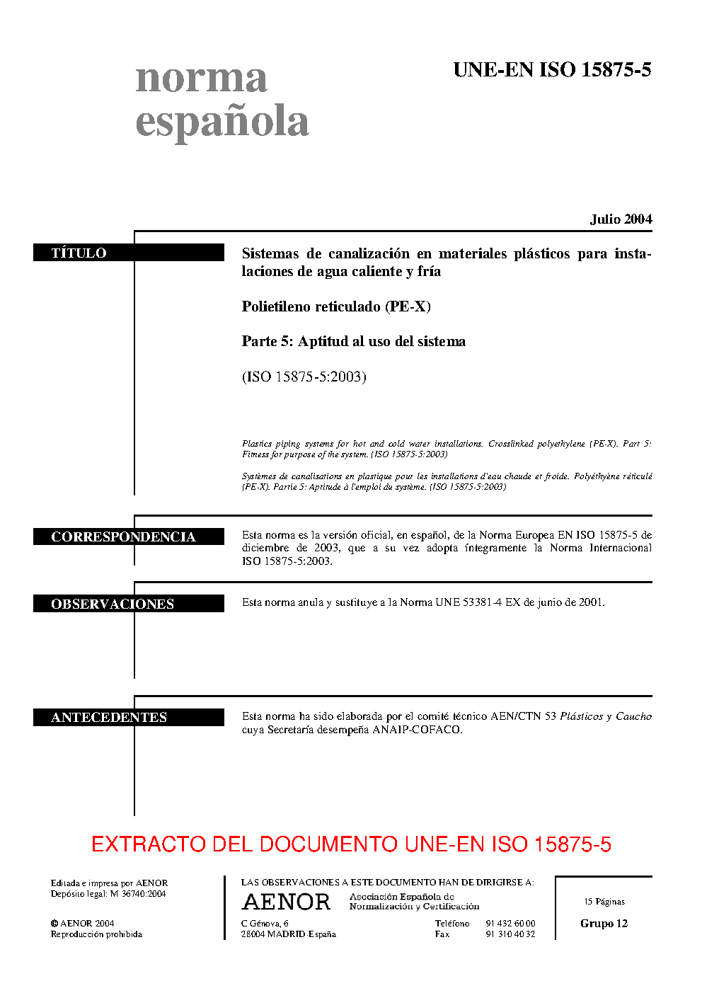 | Publisher | Asociacion Espanola de Normalizacion y Certificacion (AENOR) |