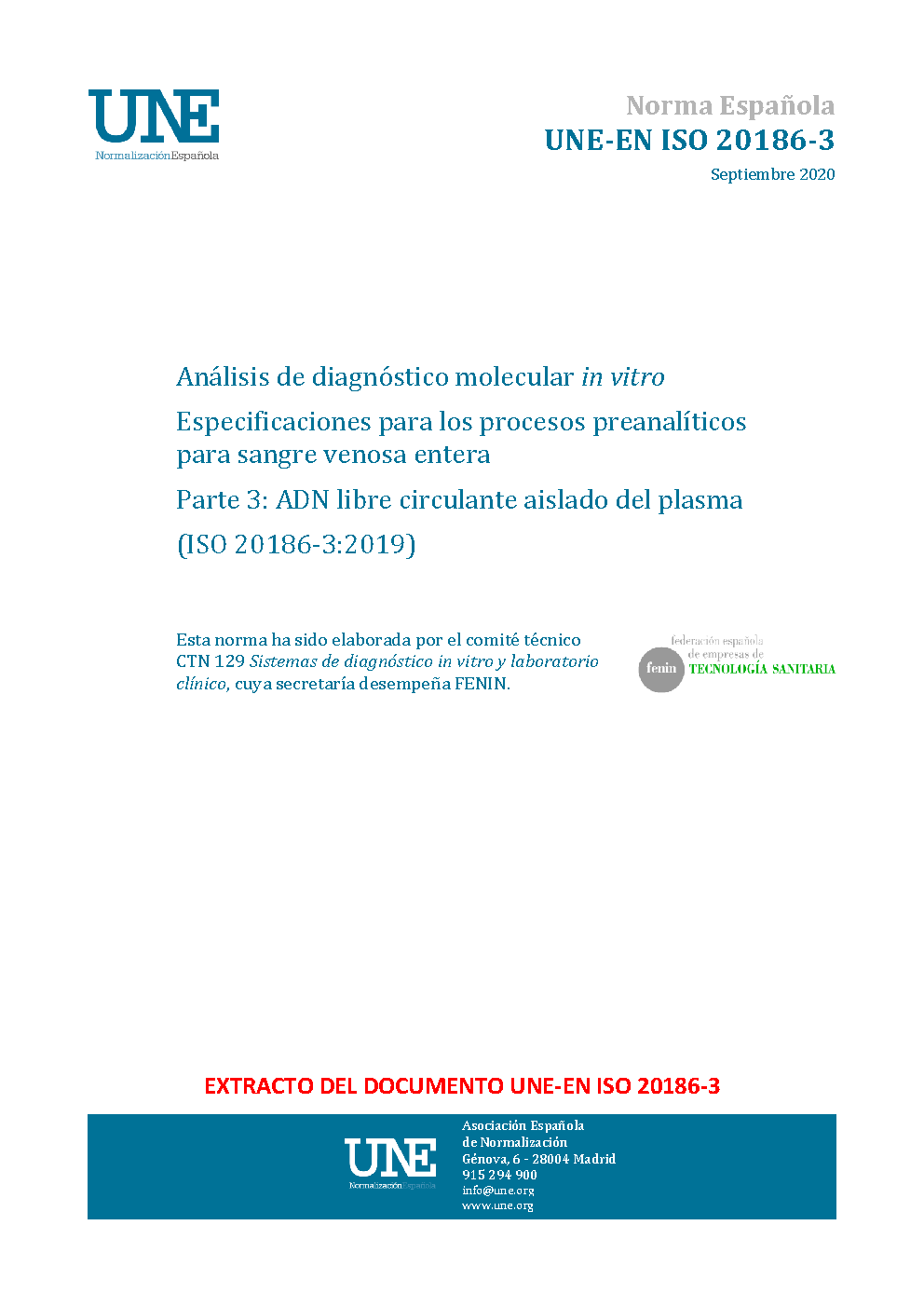 Molecular in-vitro diagnostic examinations - Specifications for pre-examination processes for venous whole blood - Part 3: Isolated circulating cell free DNA from plasma (ISO 20186-3:2019)