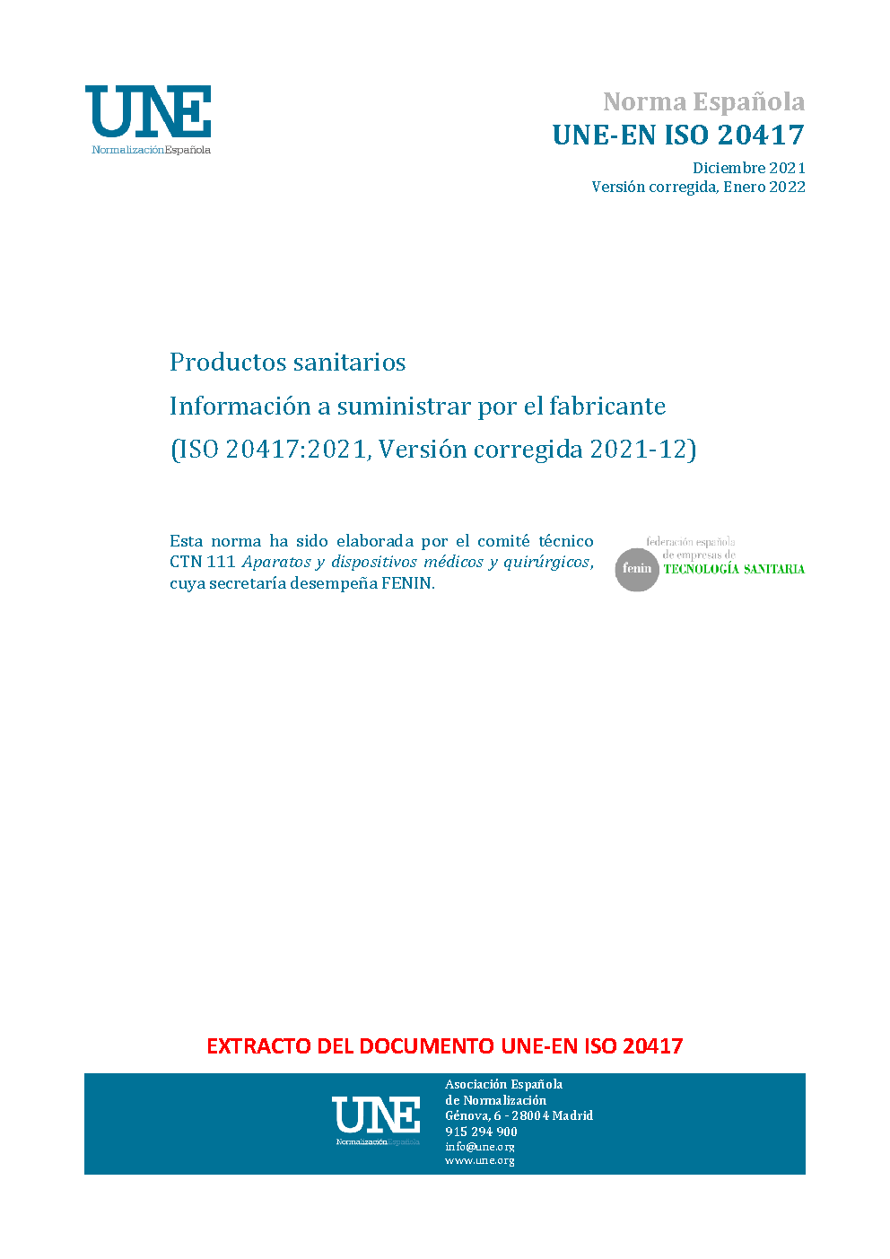 UNE-EN ISO 20417:2021