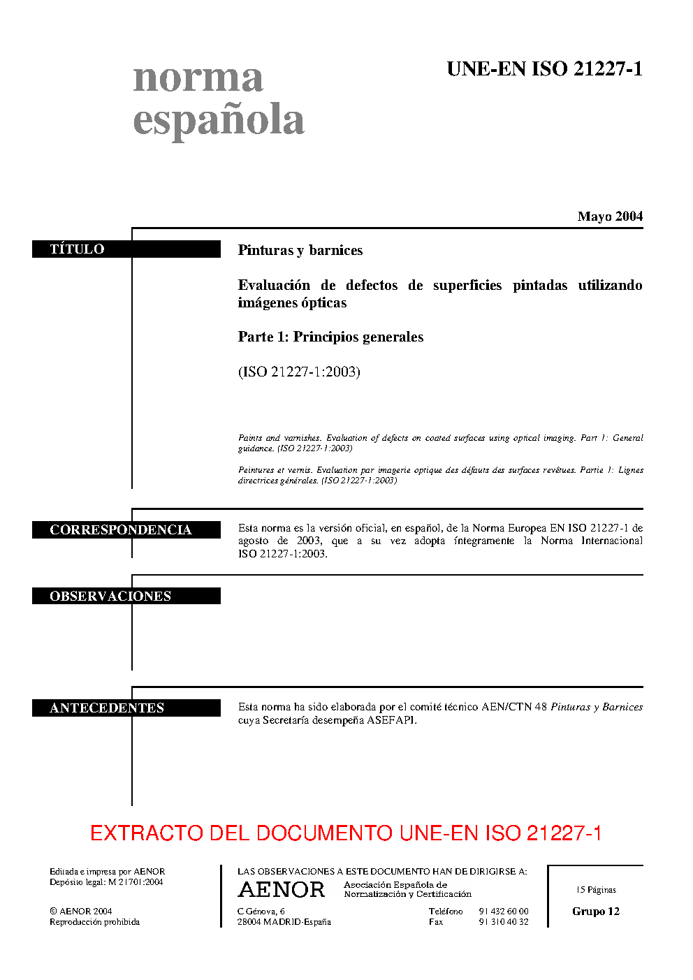 | Publisher | Asociacion Espanola de Normalizacion y Certificacion (AENOR) |