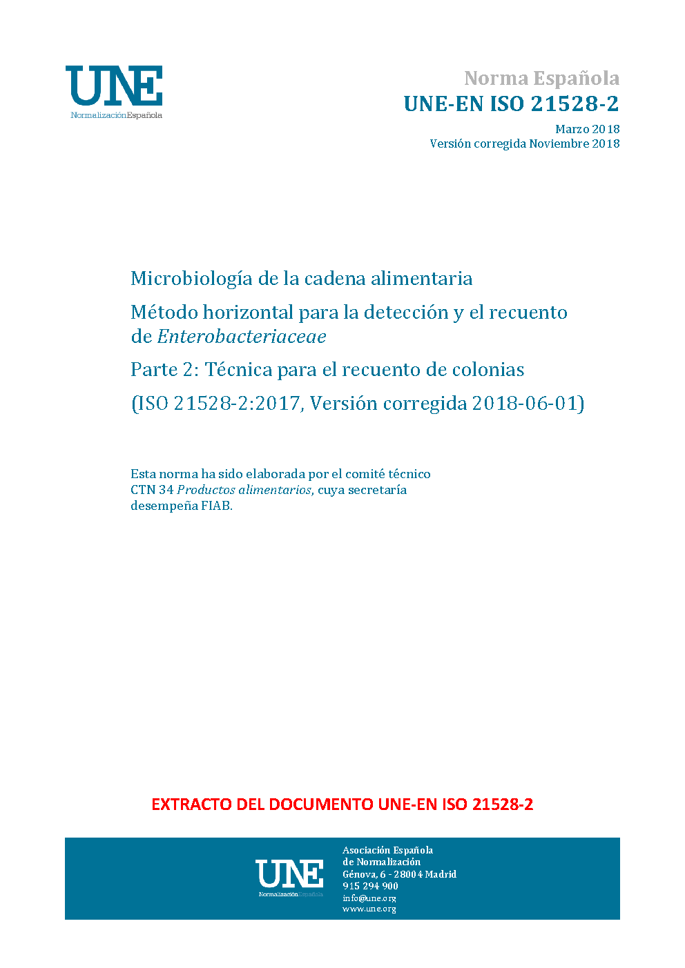 Microbiology of the food chain - Horizontal method for the detection and enumeration of Enterobacteriaceae - Part 2: Colony-count technique (ISO 21528-2:2017, Corrected version 2018-06-01)