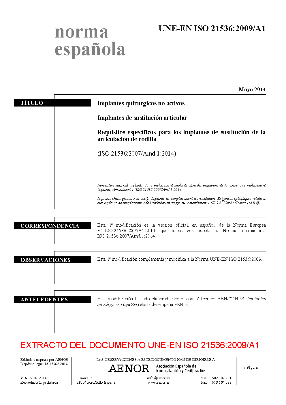 | Publisher | Asociacion Espanola de Normalizacion y Certificacion (AENOR) |